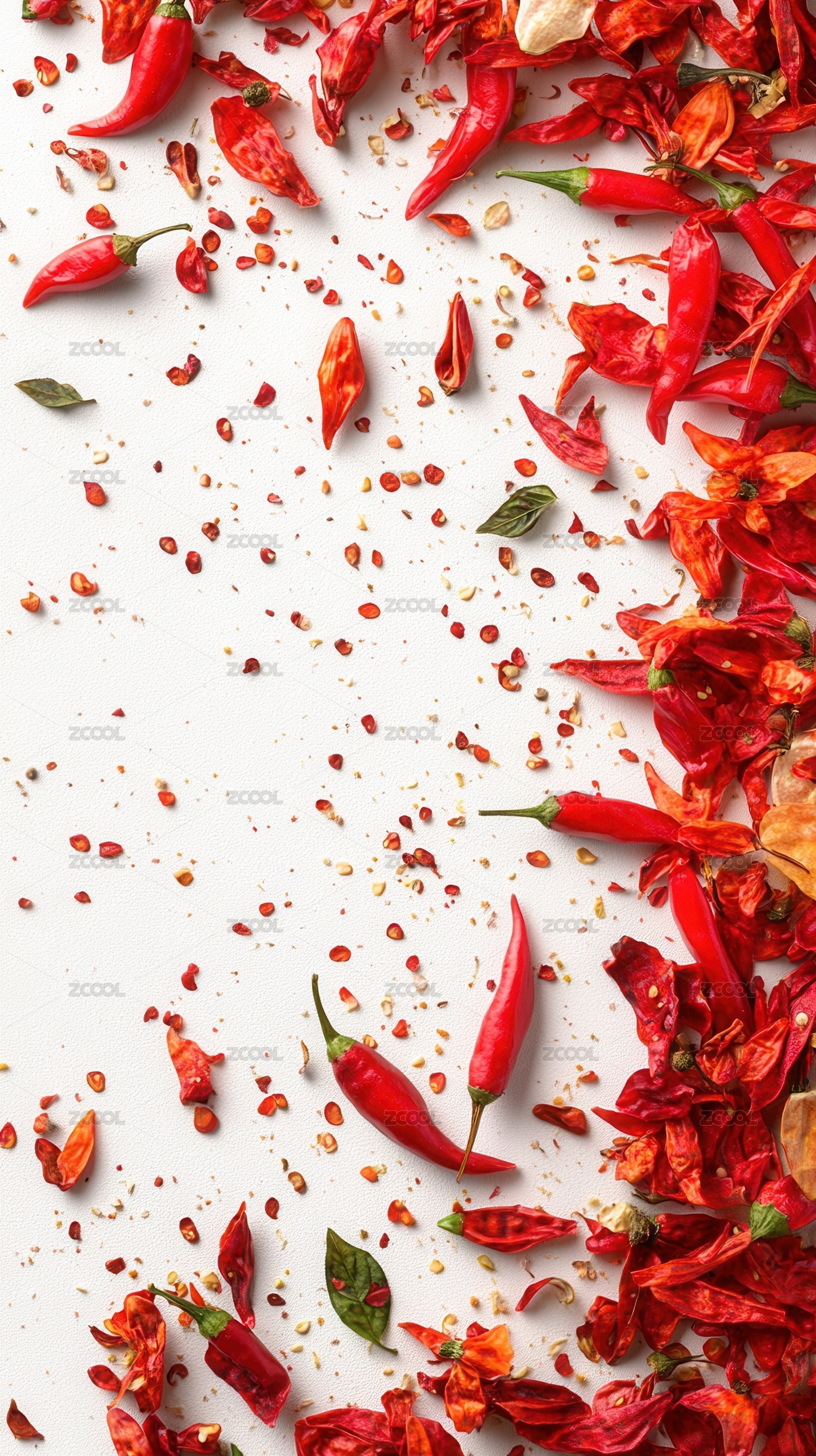 散落的红辣椒与辣椒碎