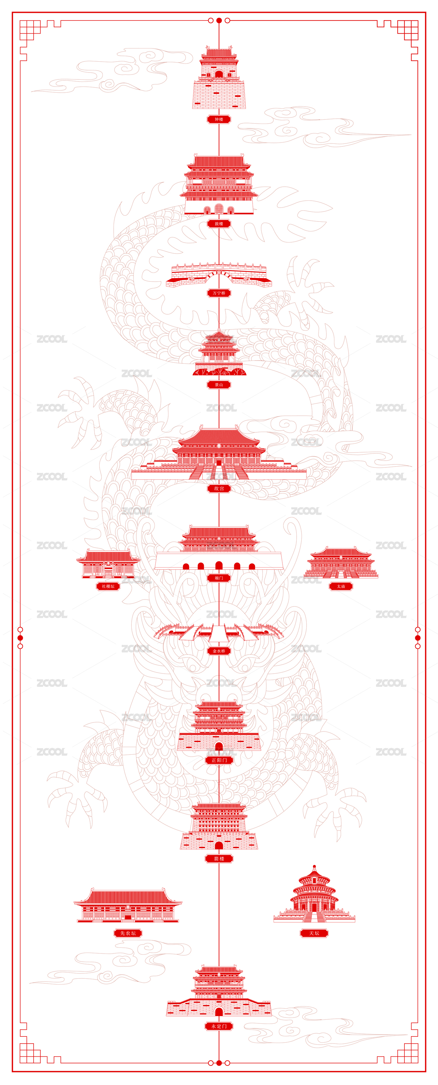 剪纸风格北京中轴线上桥梁万宁桥插画