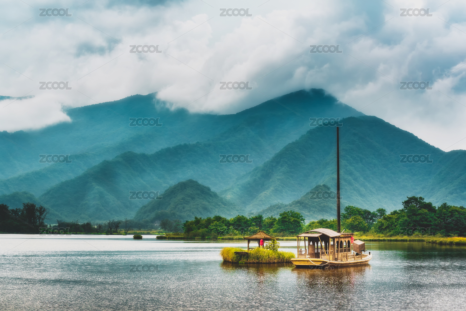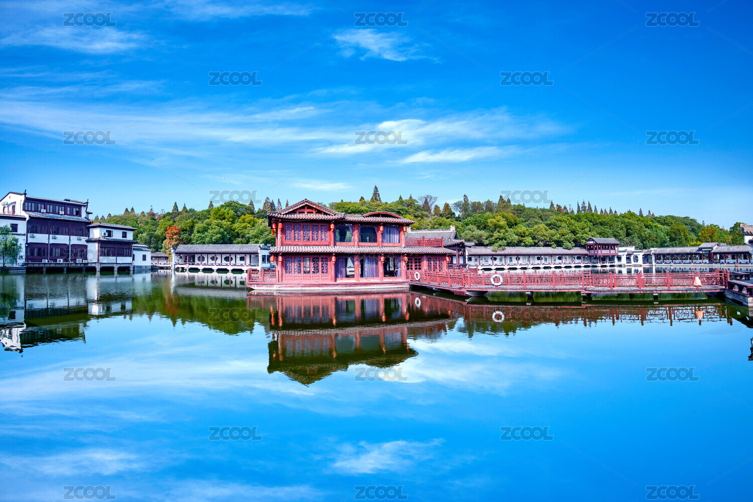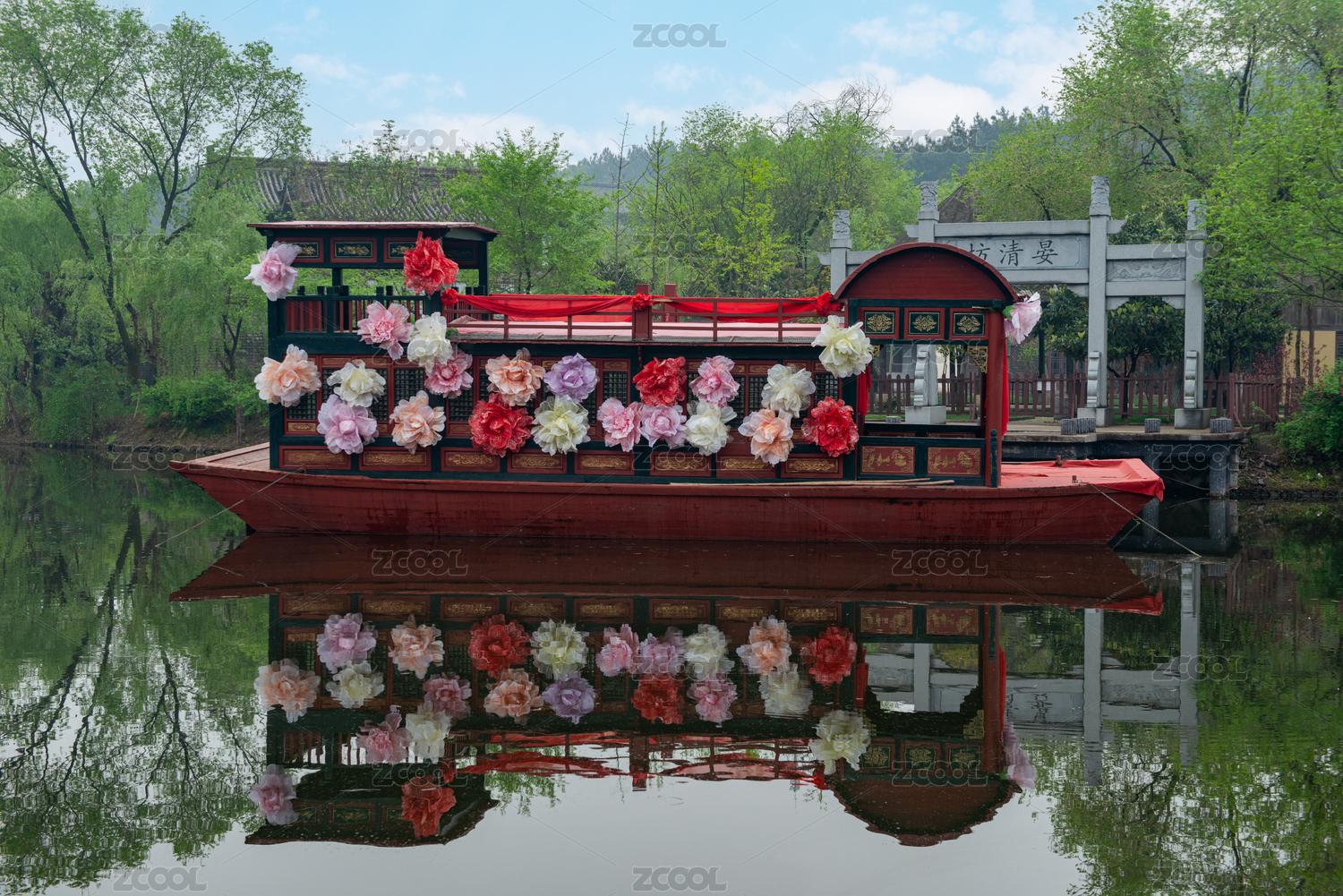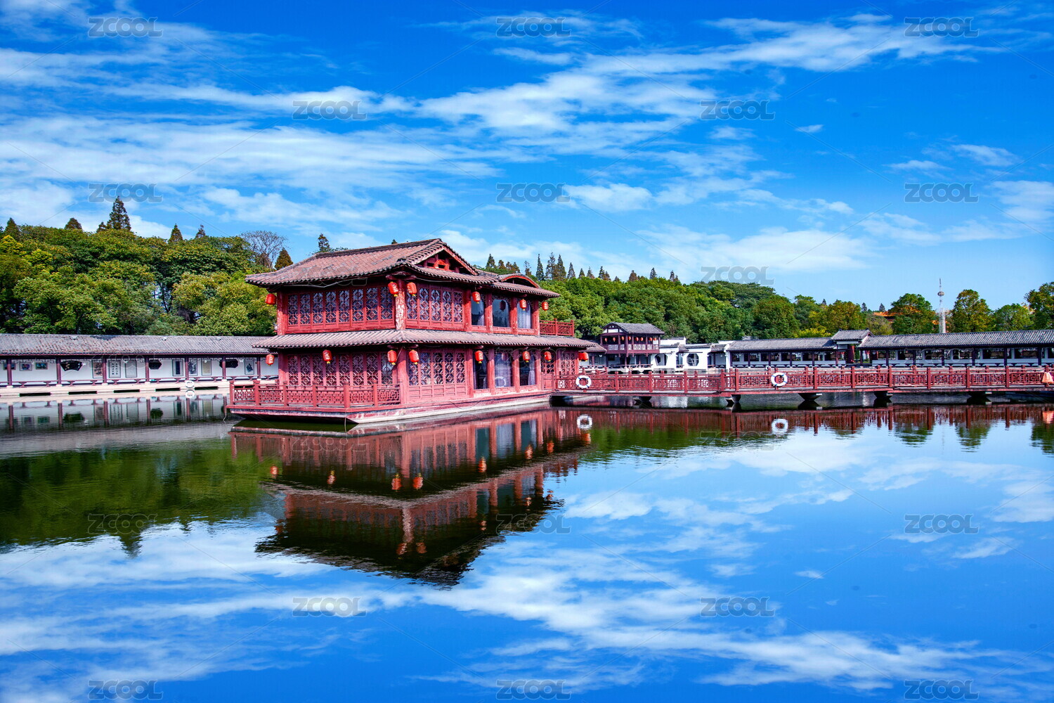 湖北荆州九老仙都湘东苑南北朝园林湖中画舫