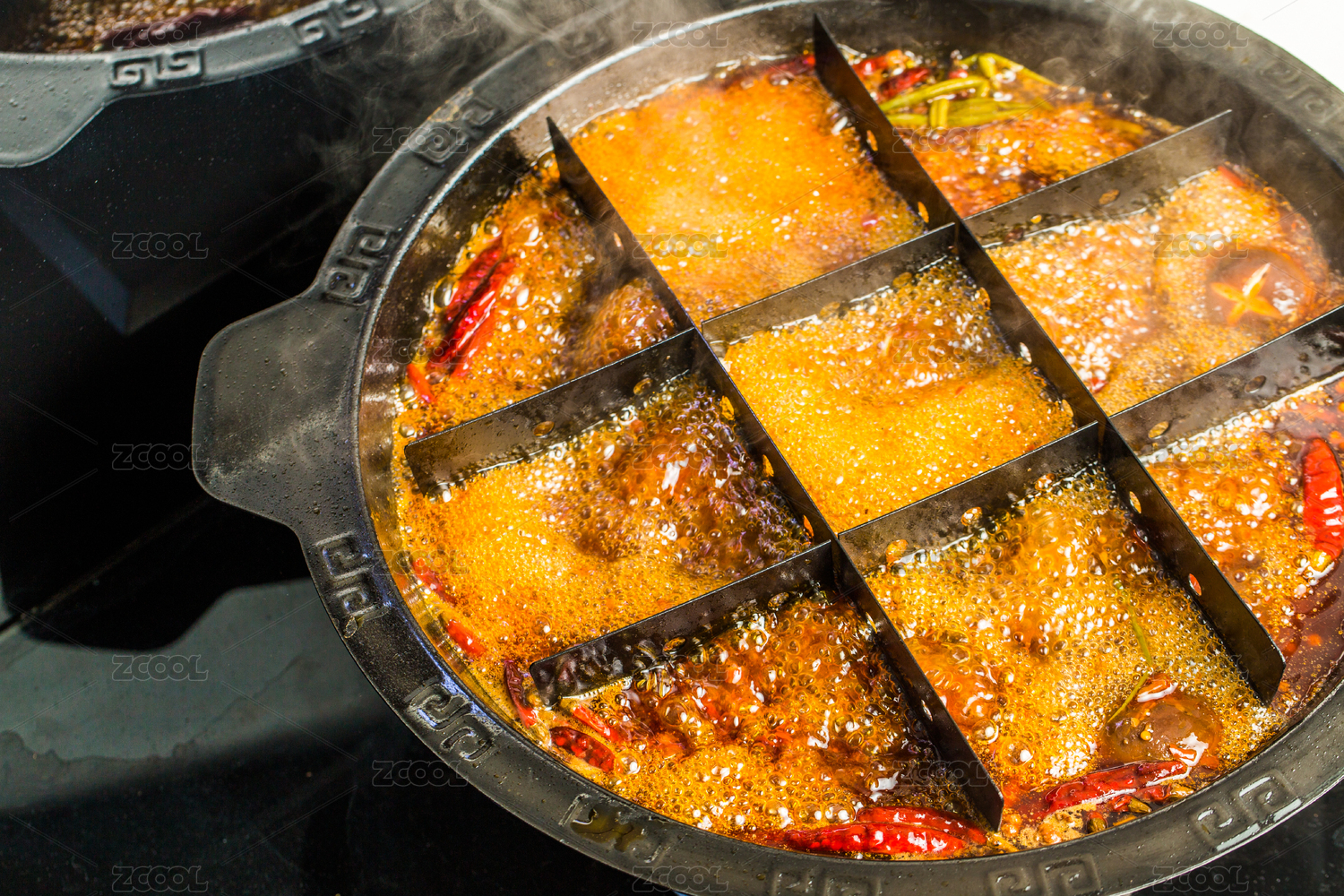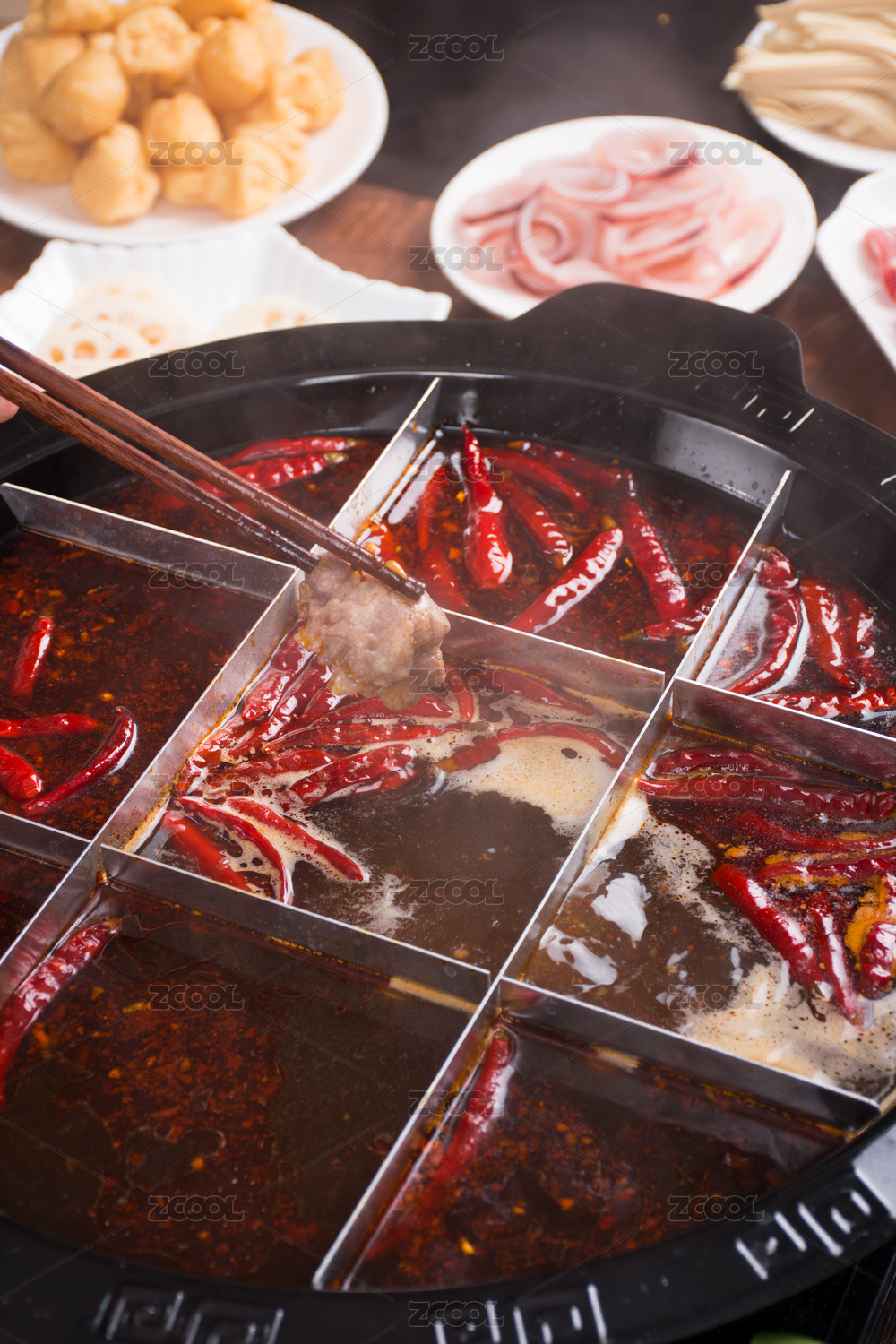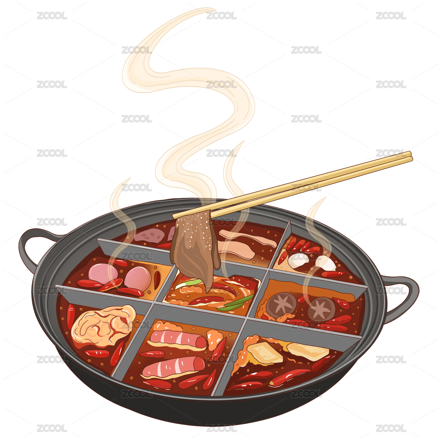 餐桌上摆满火锅食材,中间还有一盆九宫格火锅浓汤
