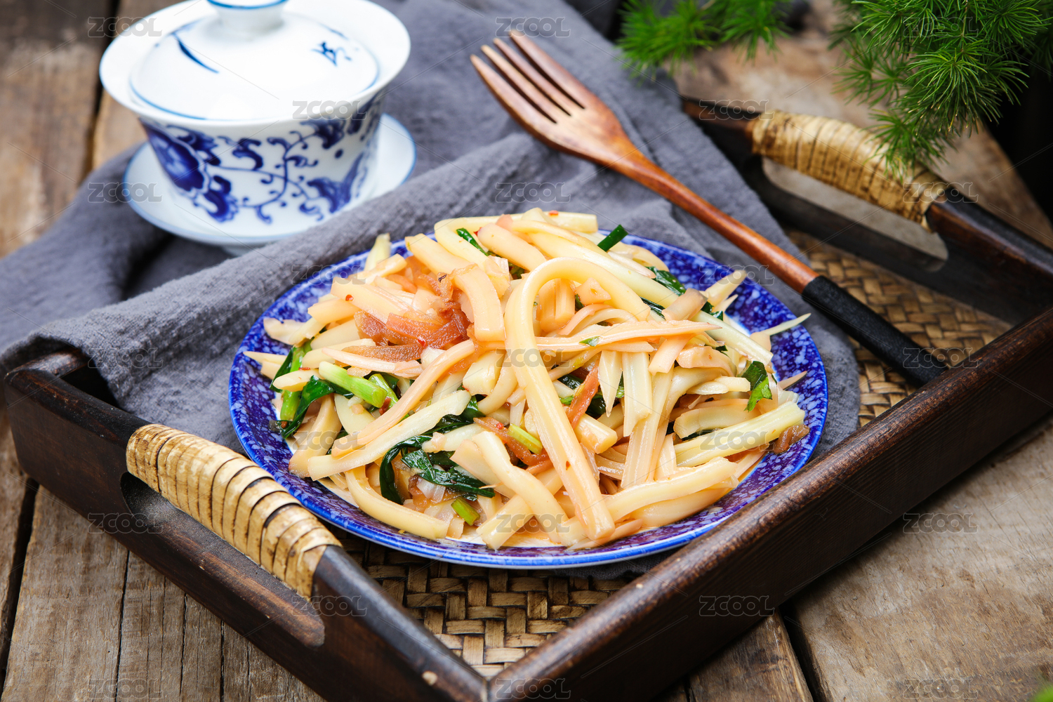 餐盘里的凉拌米皮