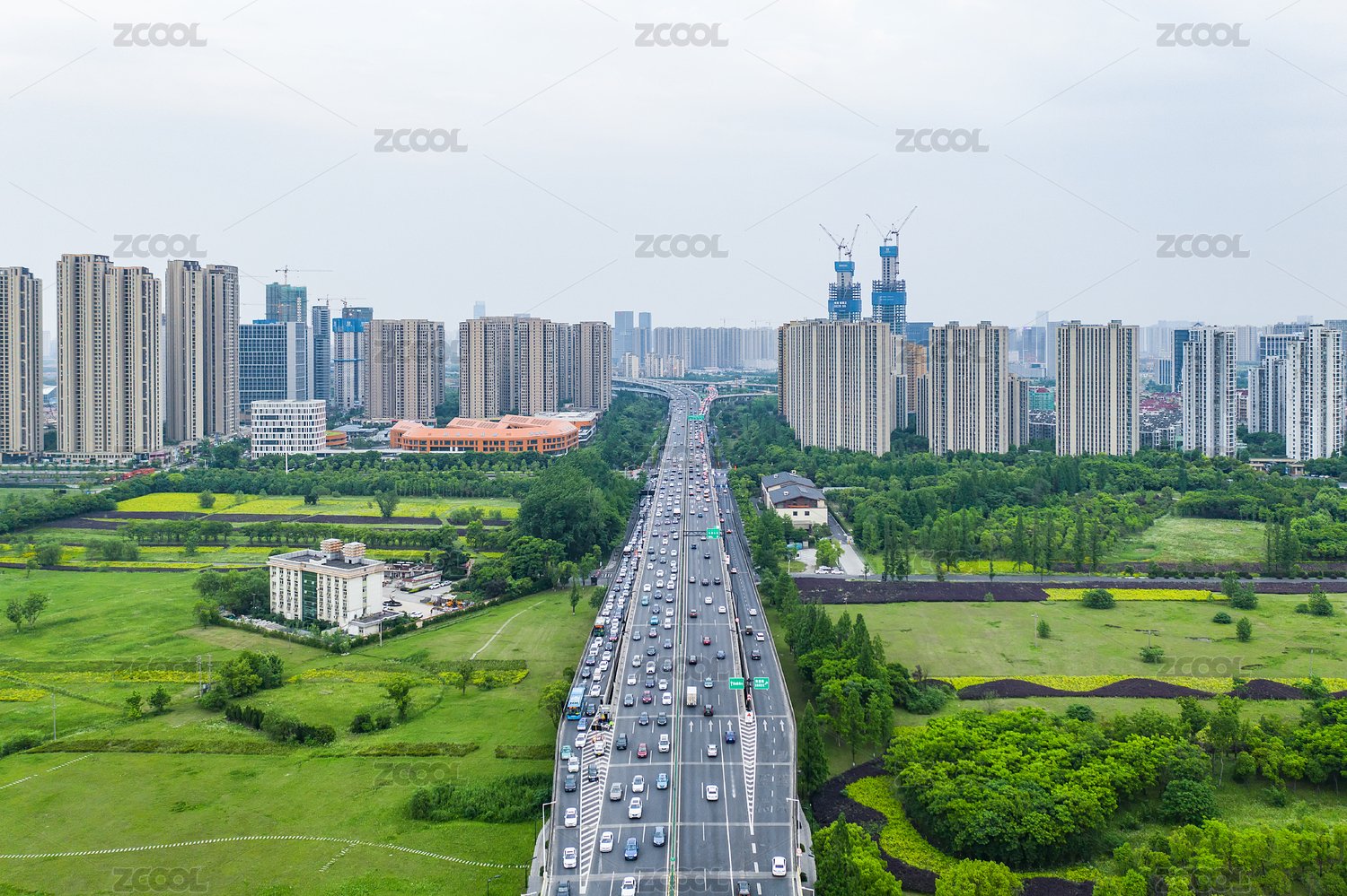 中国浙江杭州滨江区秋石高架路奥体板块绿化草坪
