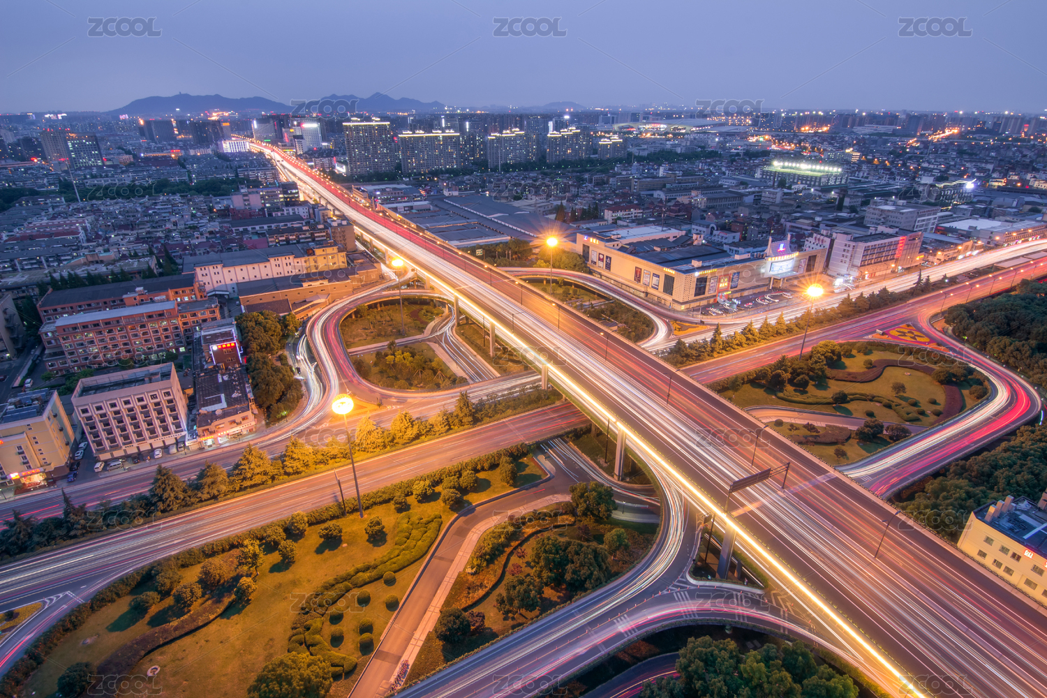 浙江省杭州上城区城区秋石高架晨曦航拍