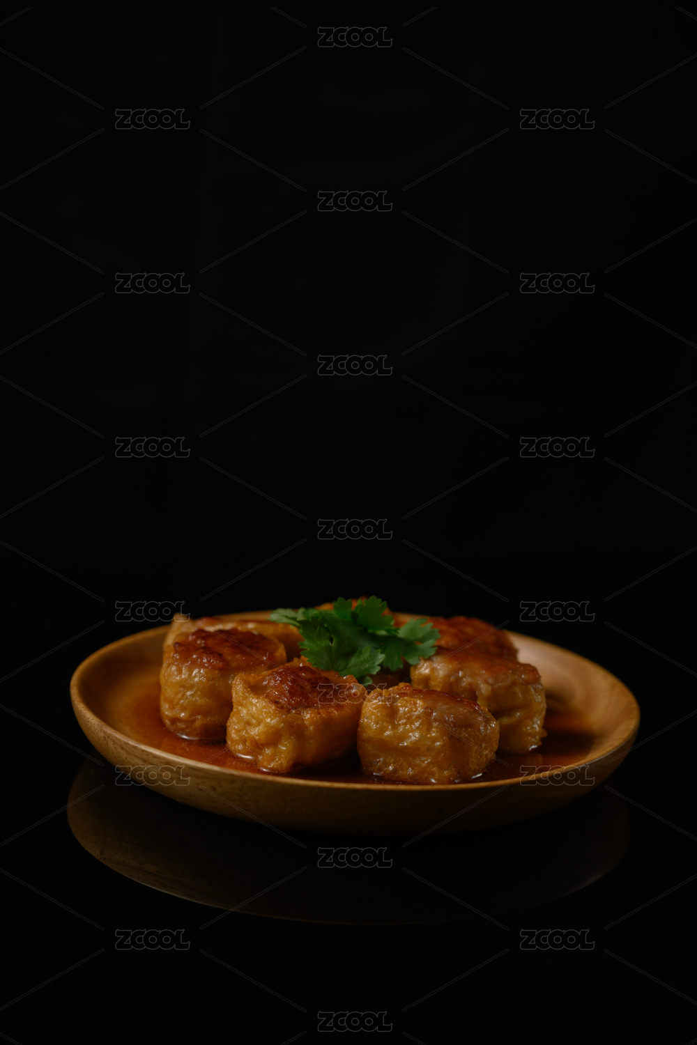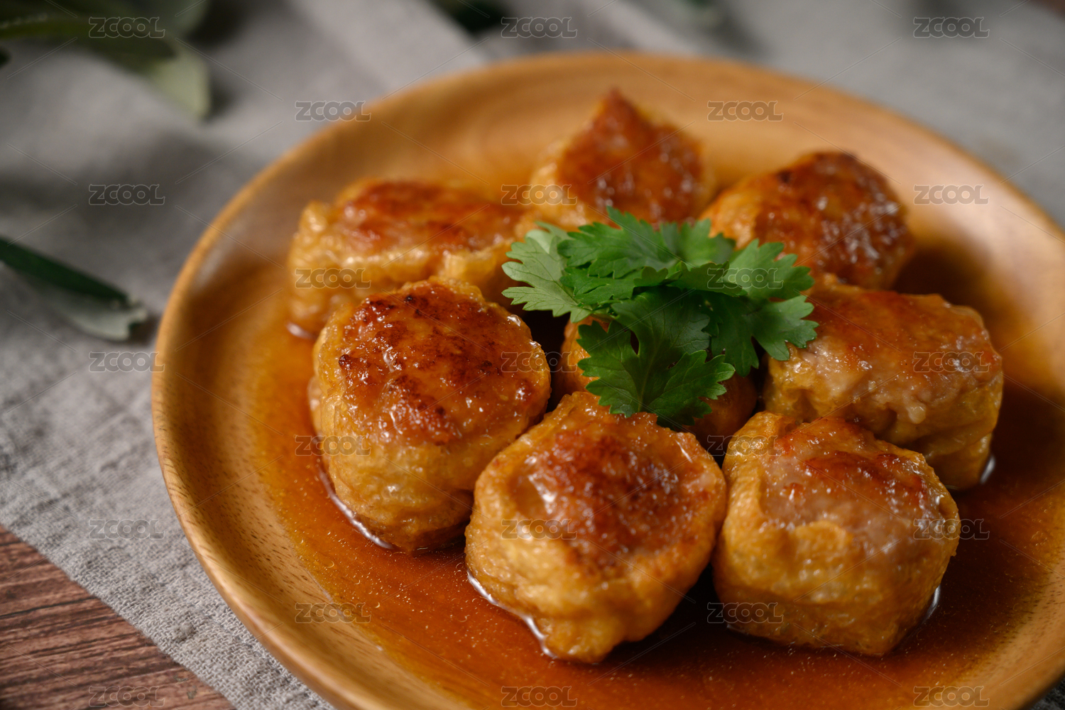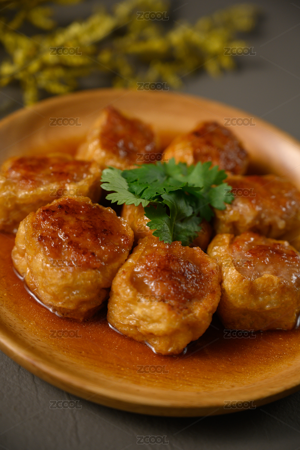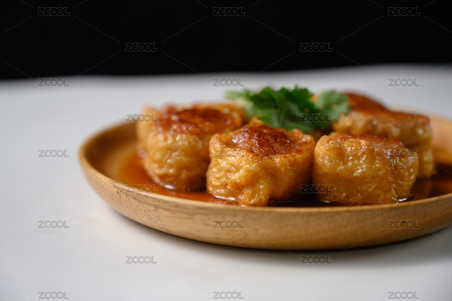 桌面上的盘子里的美味可口的煎酿豆腐