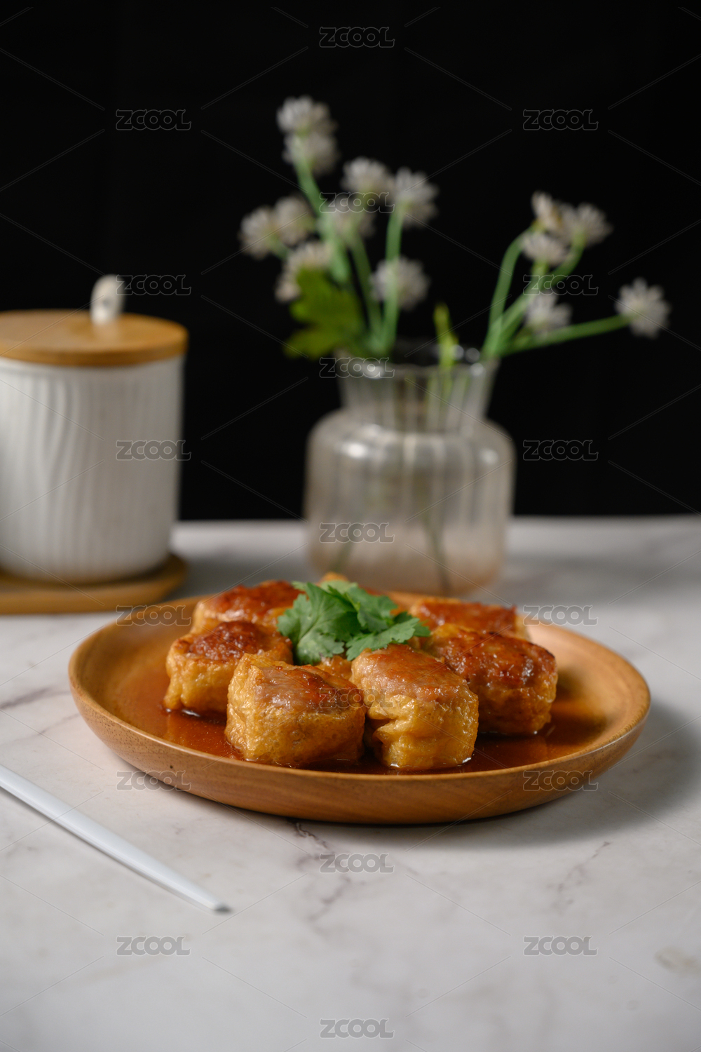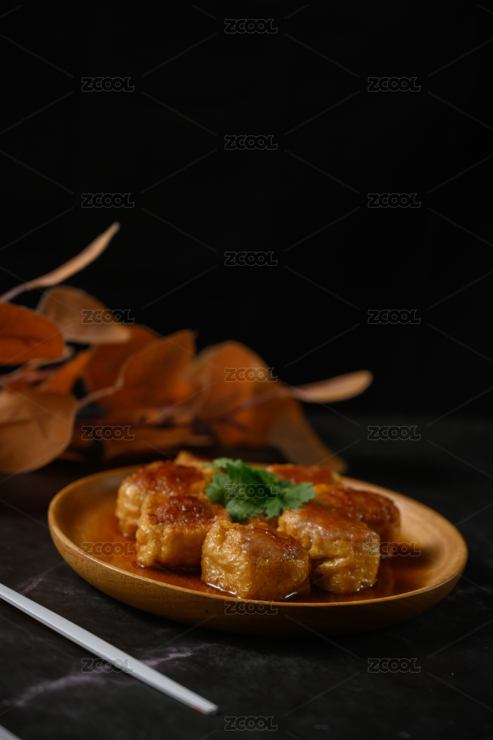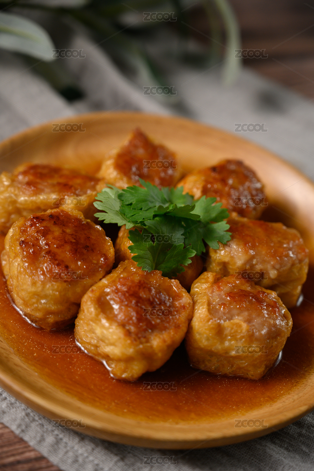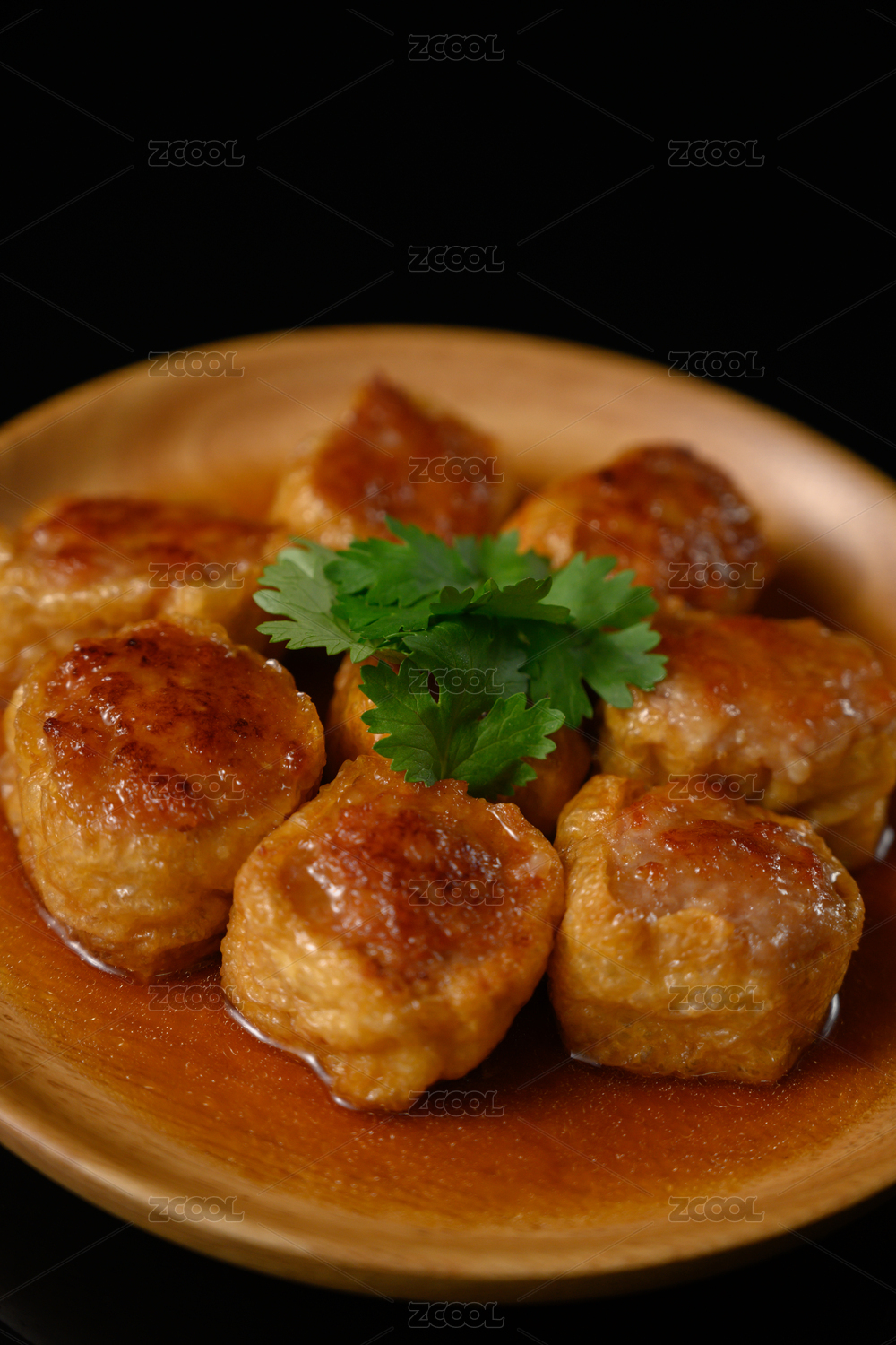 桌面上的盘子里的美味可口的煎酿豆腐