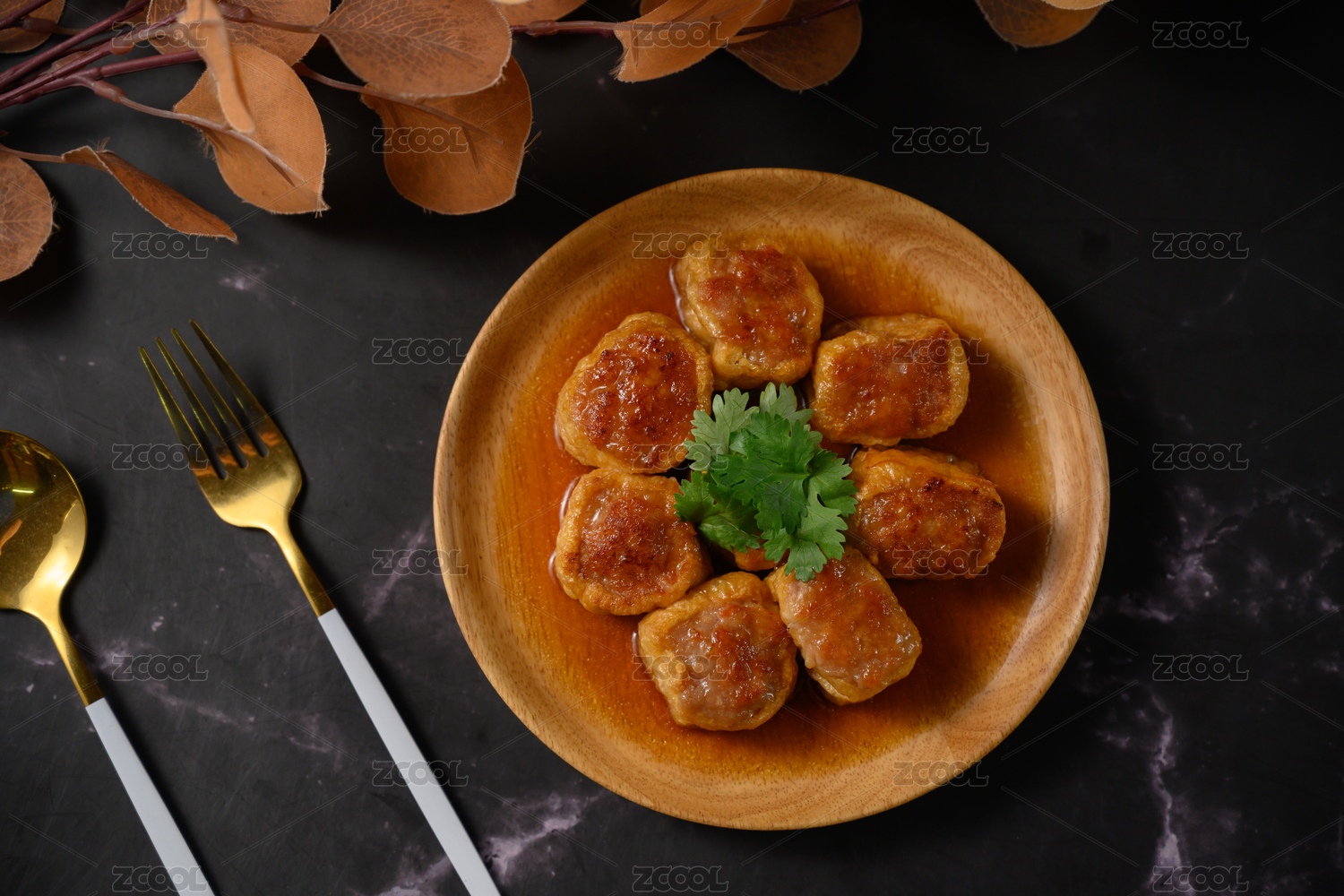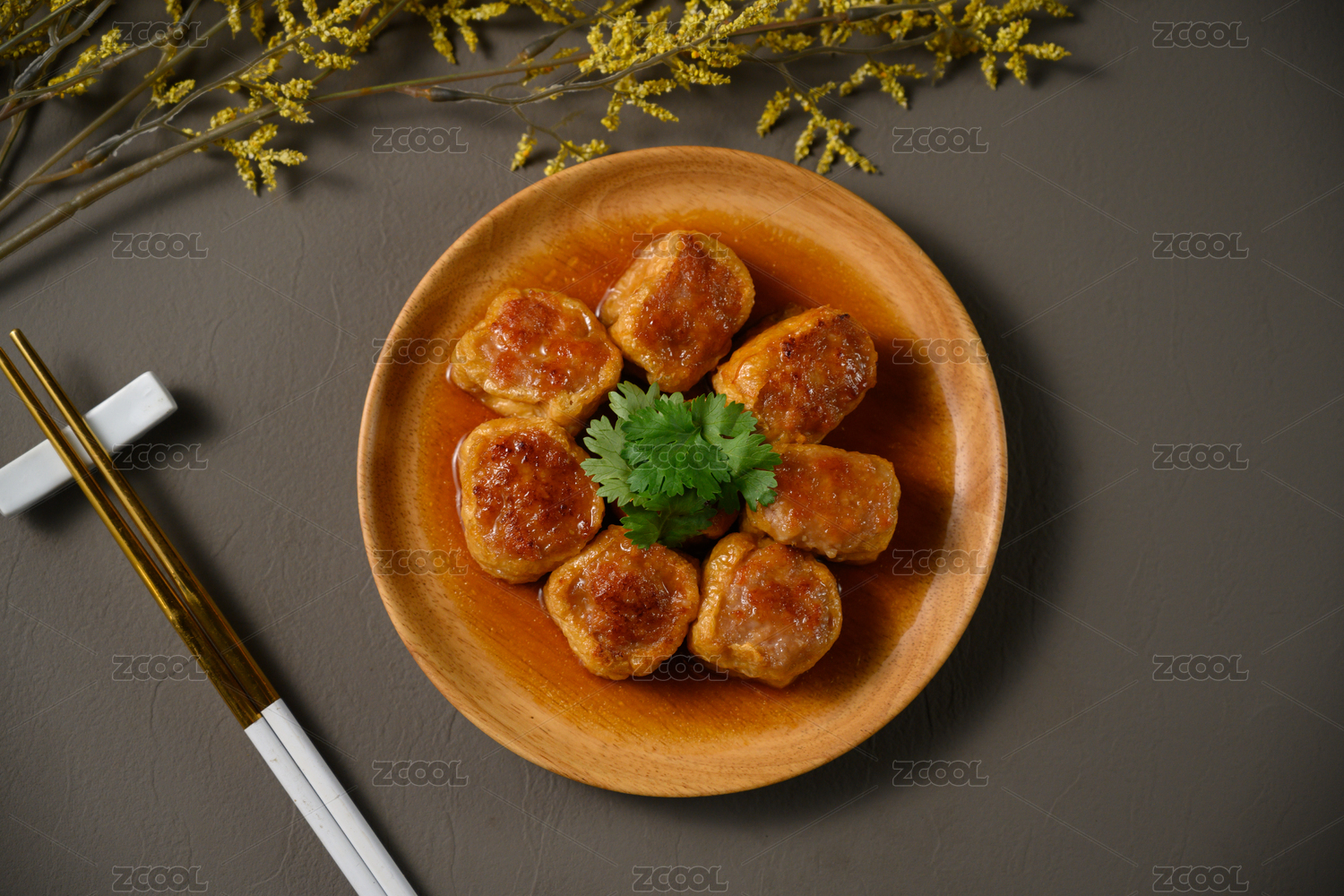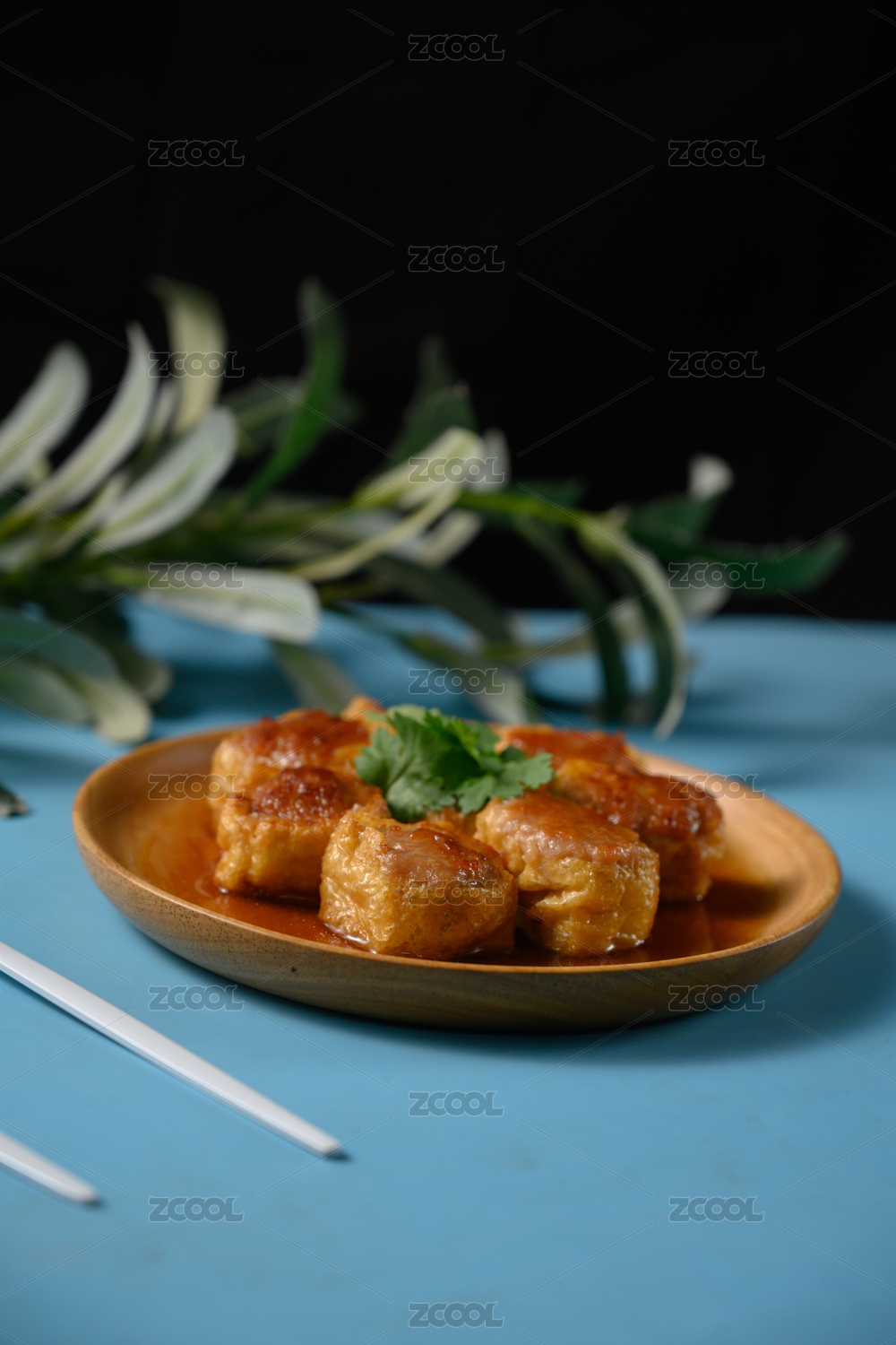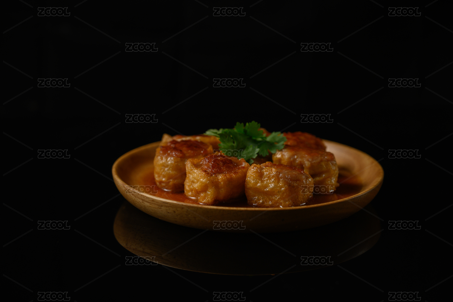 桌面上的盘子里的美味可口的煎酿豆腐
