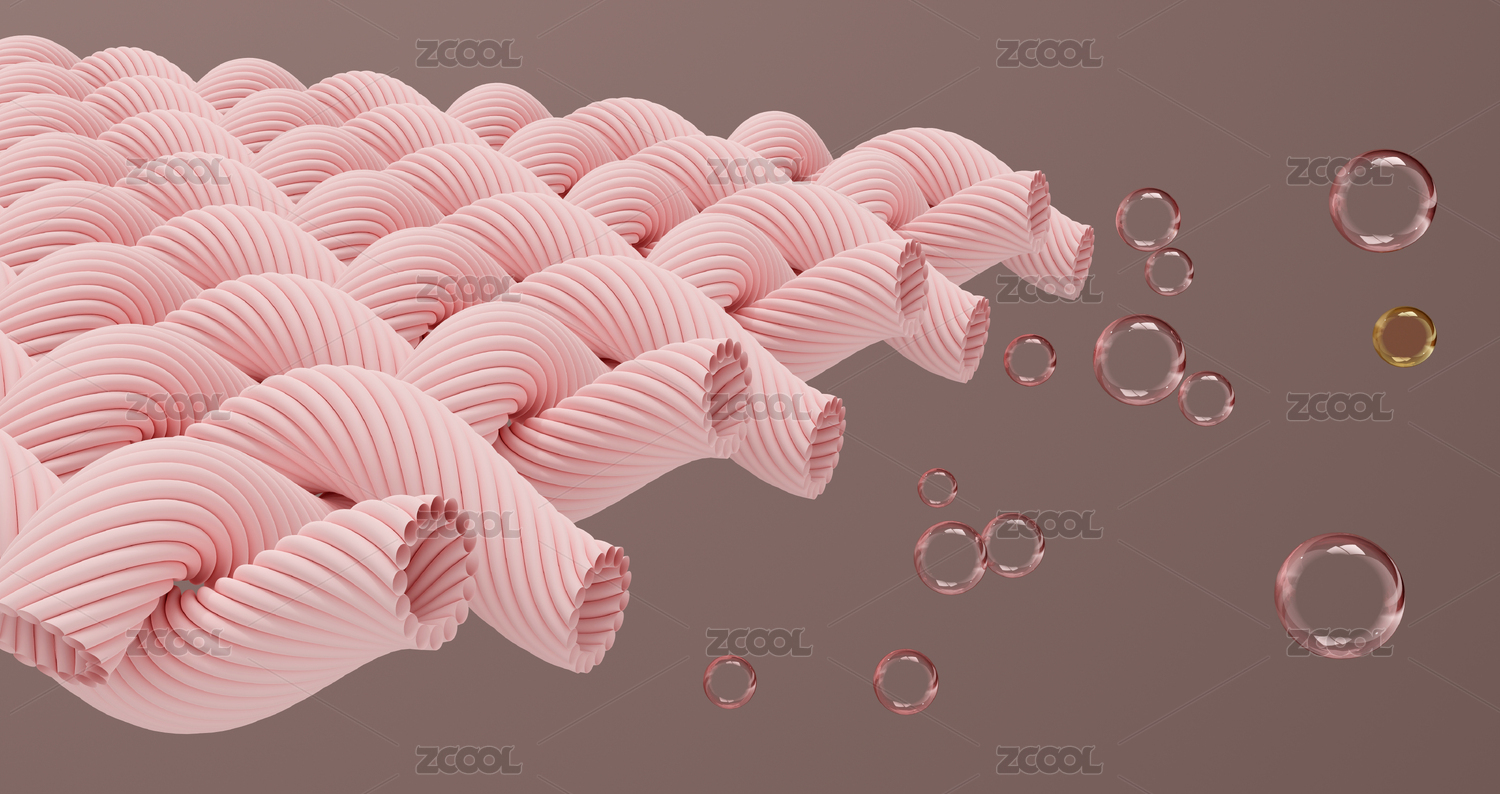 粉色纳米微观纤维面料与气泡水分子组合
