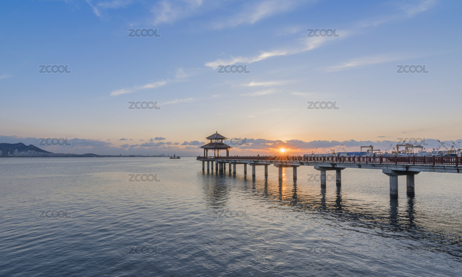 中国山东荣成石岛栈桥日出