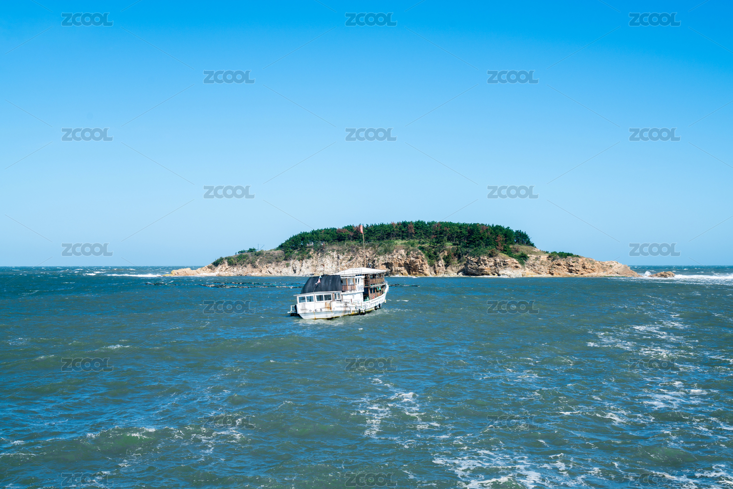 山东威海小石岛腐蚀的小船飘在海上