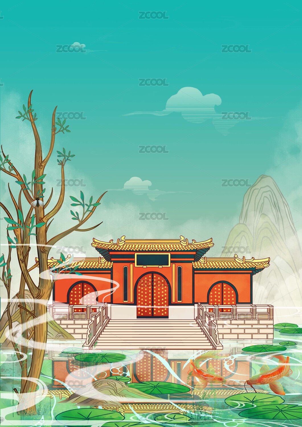 中国河北省赵县柏林禅寺的中国传统式建筑