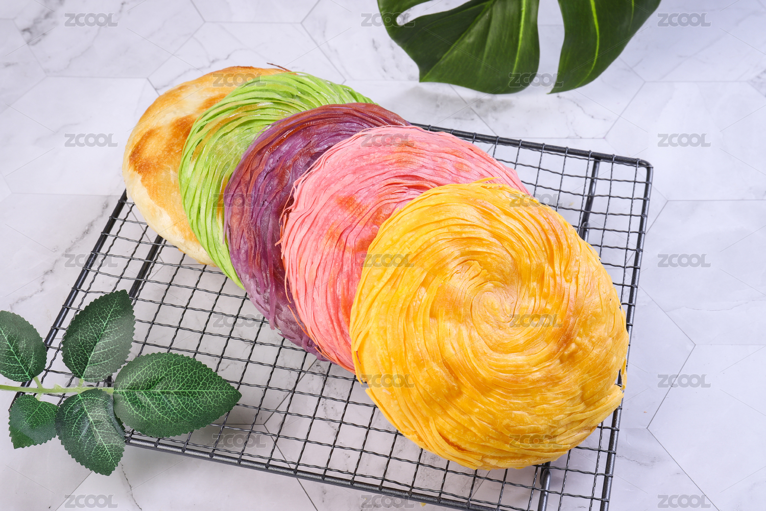 大理石背景上的彩色潼关夹馍饼子