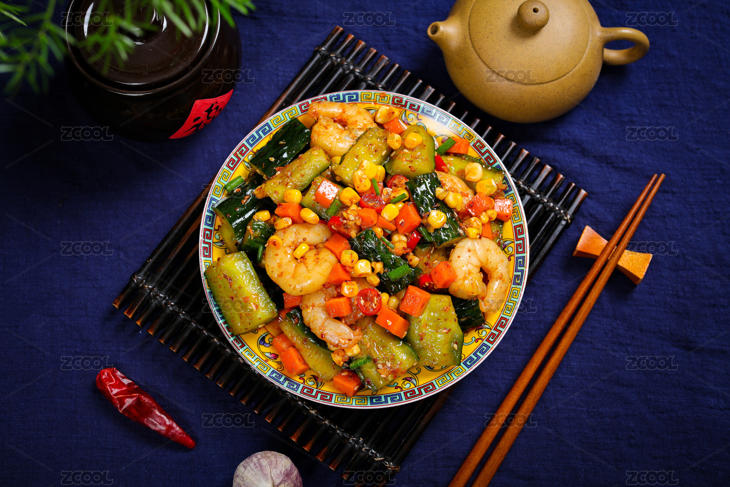 特色农家菜凉拌虾仁拍黄瓜