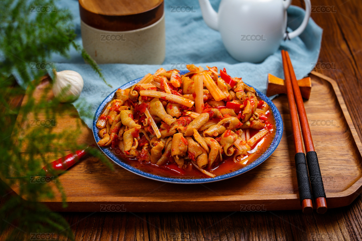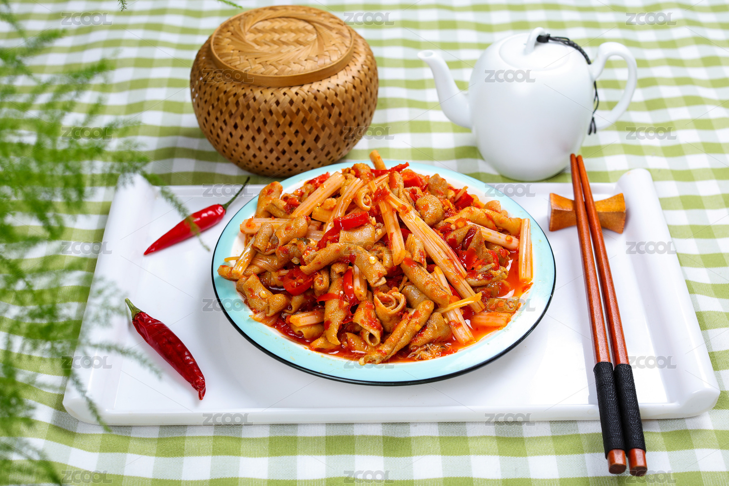 中餐特色菜糟辣子芹菜炒鸡肠