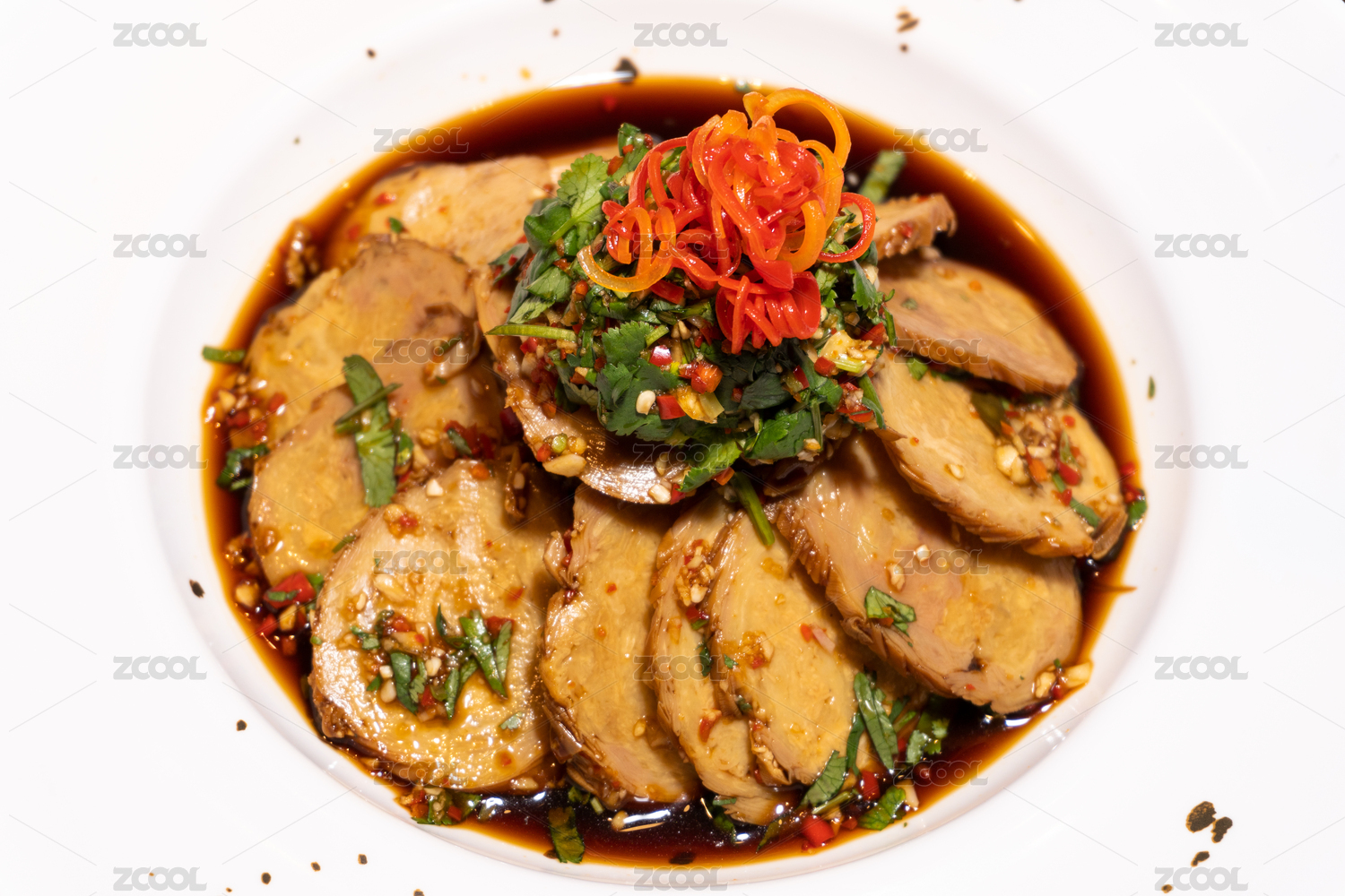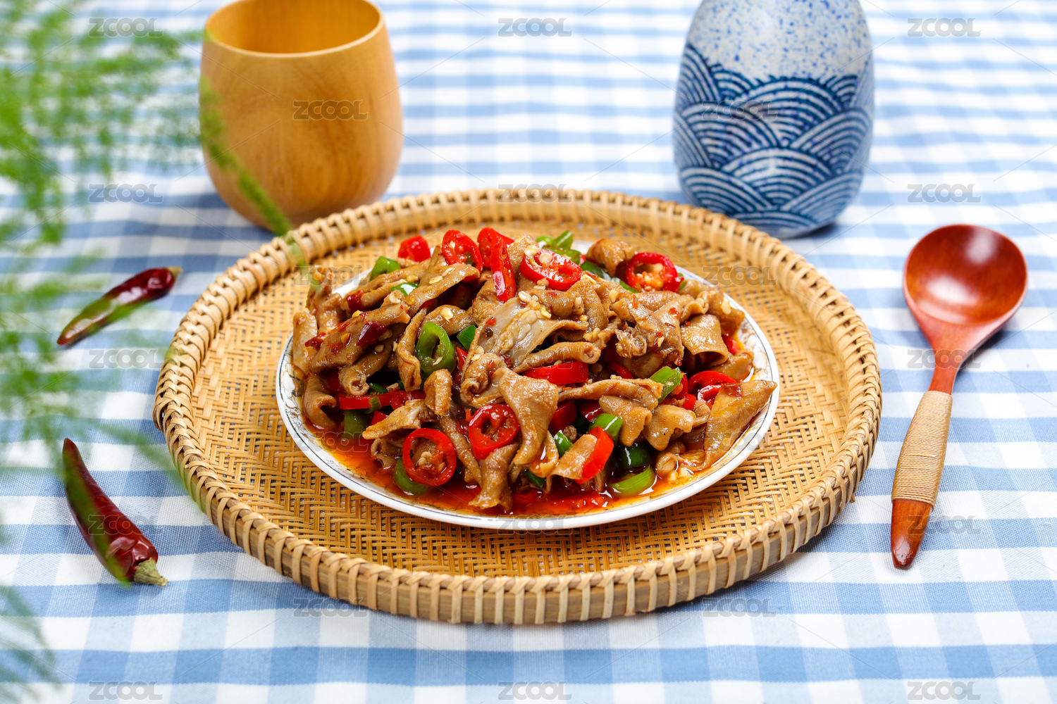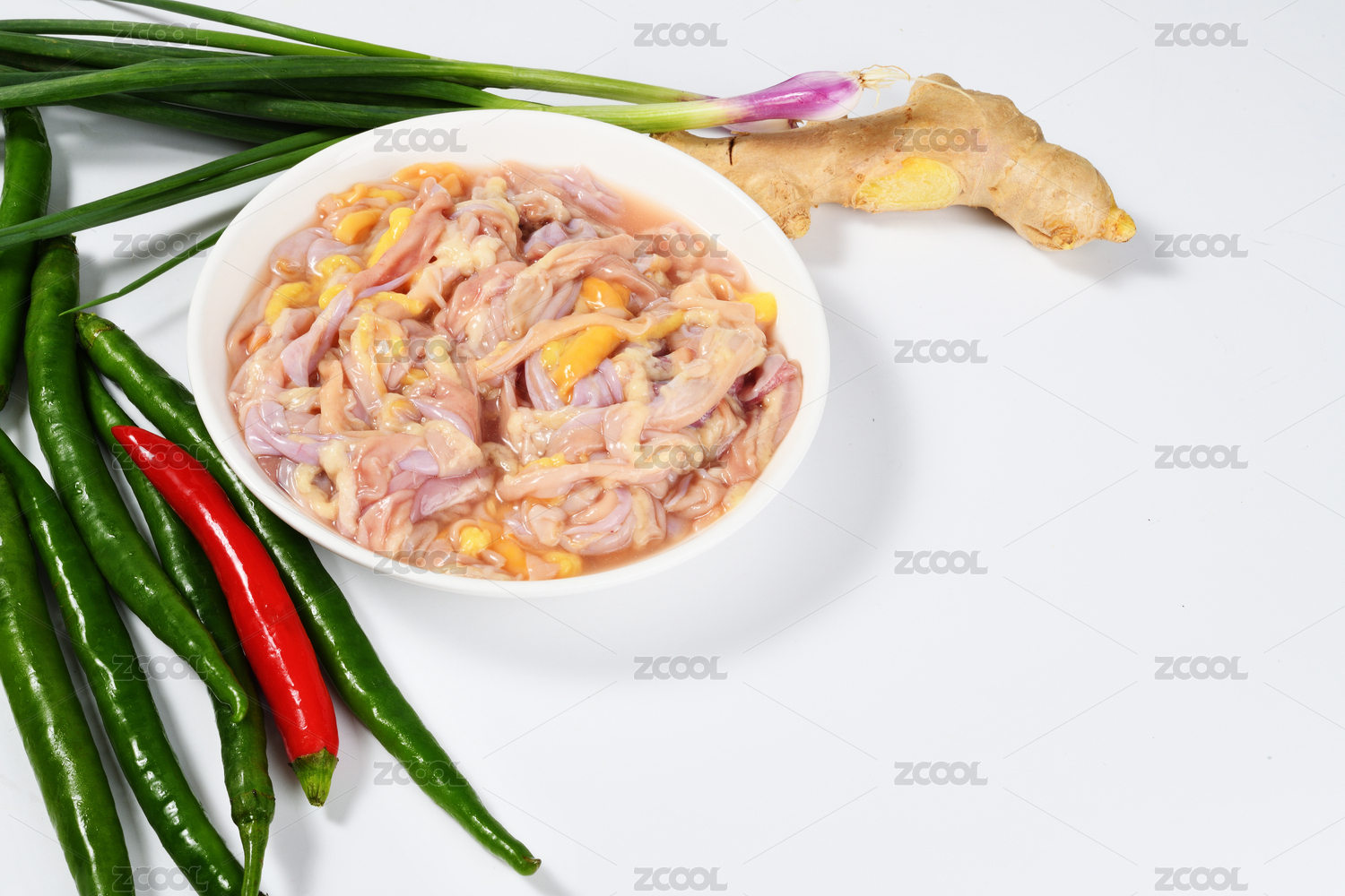 新鲜的辣椒鸡肠生姜等食材