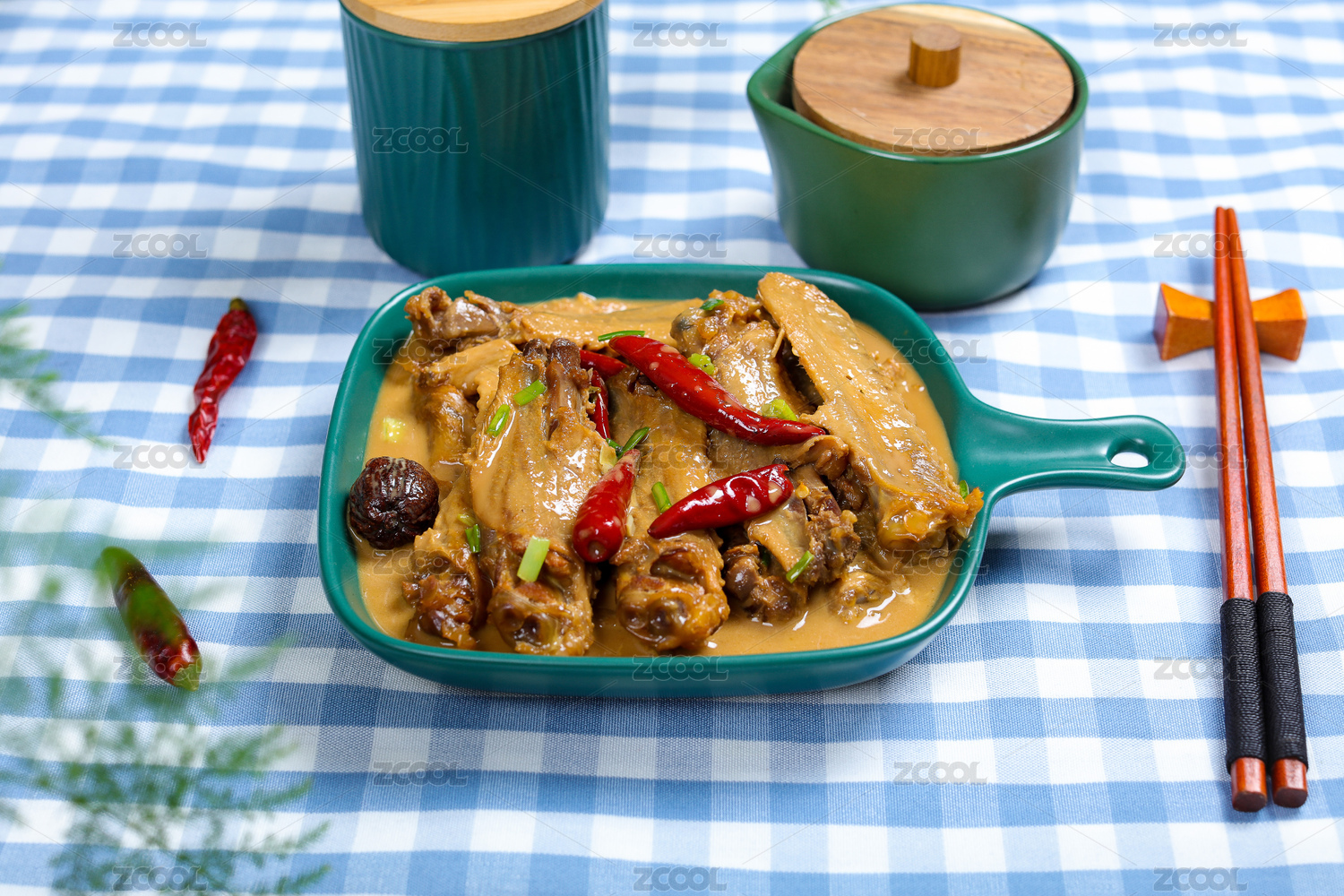在木质背景下的潮汕卤水拼盘,五花肉鹅投米饭汤,鹅肉鹅翅膀米饭汤,中餐组合