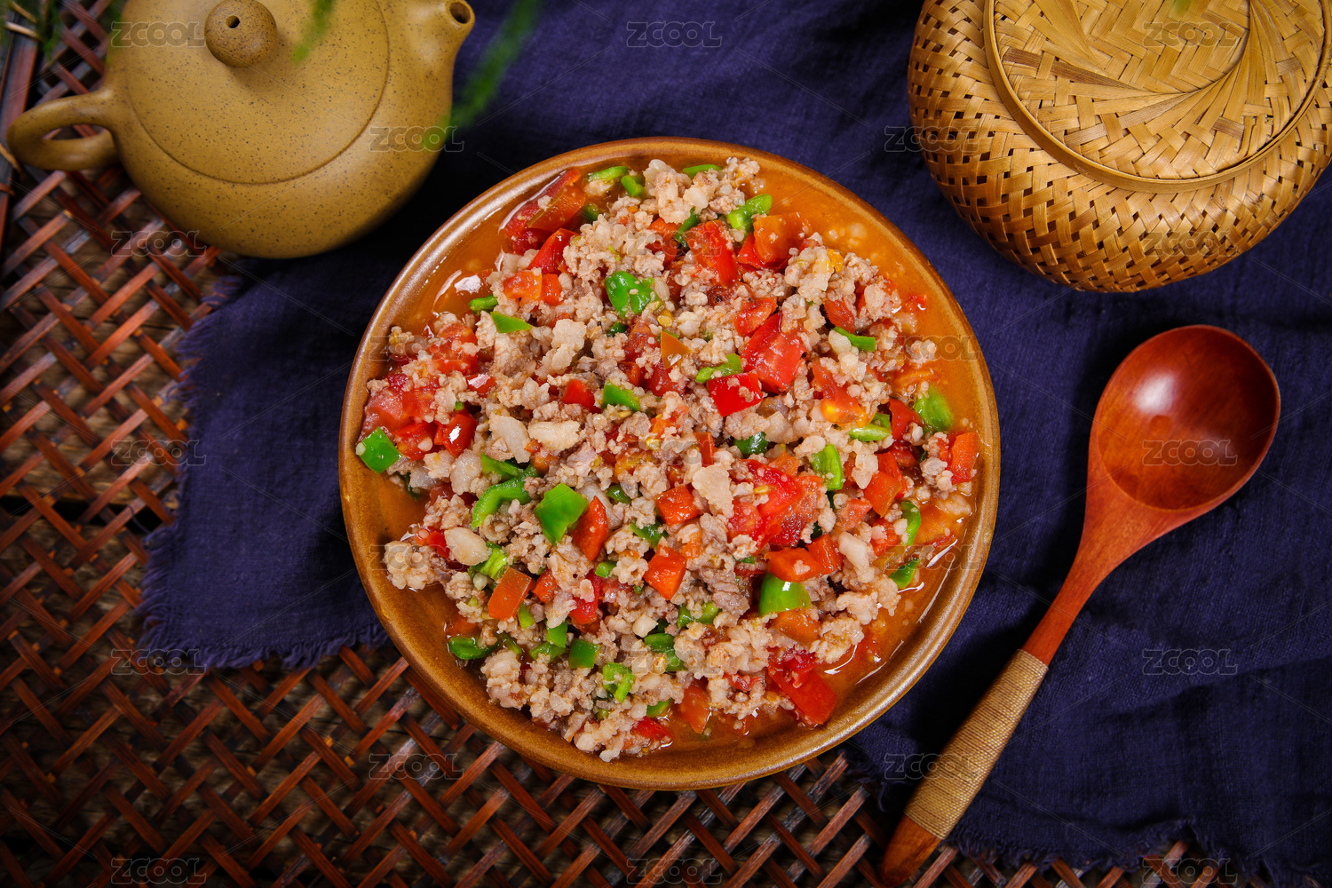 美味家常菜西红柿辣椒炒肉沫红三剁