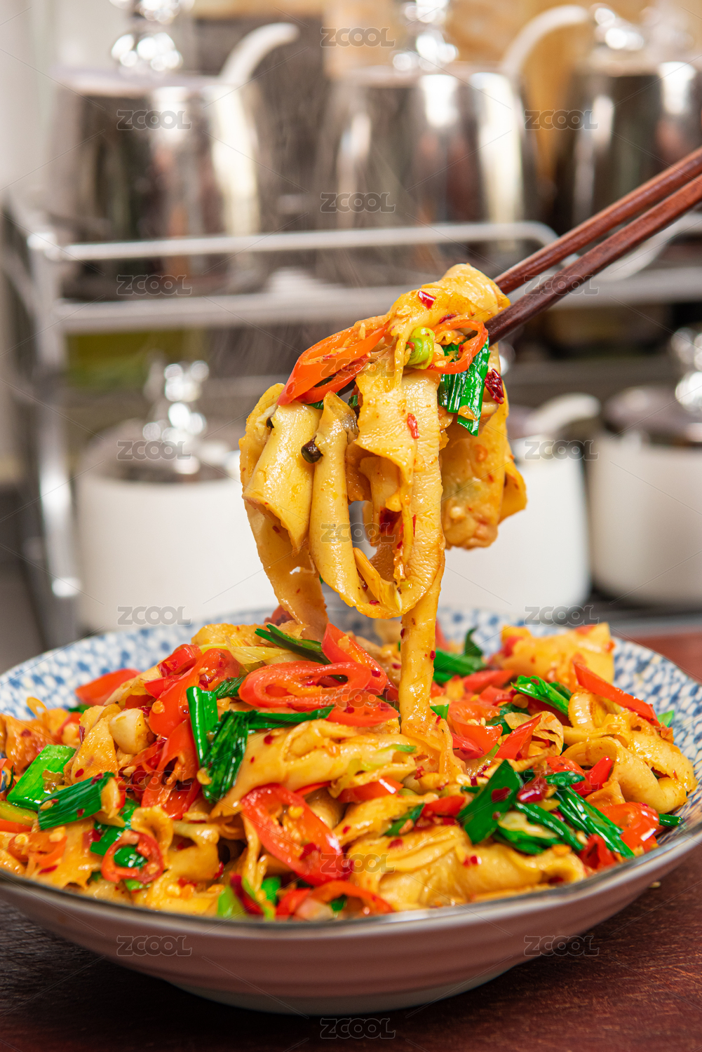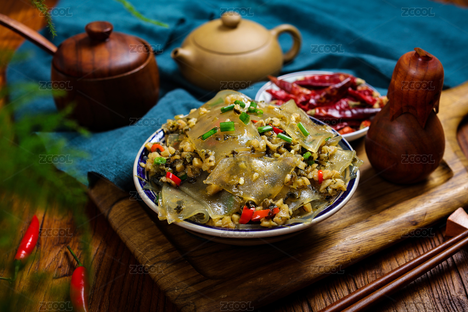 辣椒炒的红薯粉加工制作的鸡蛋皮