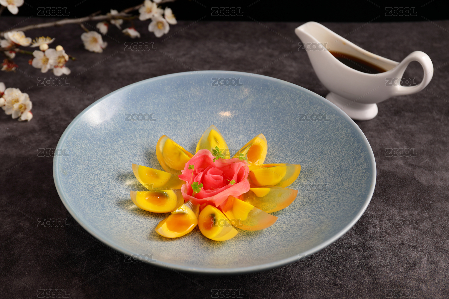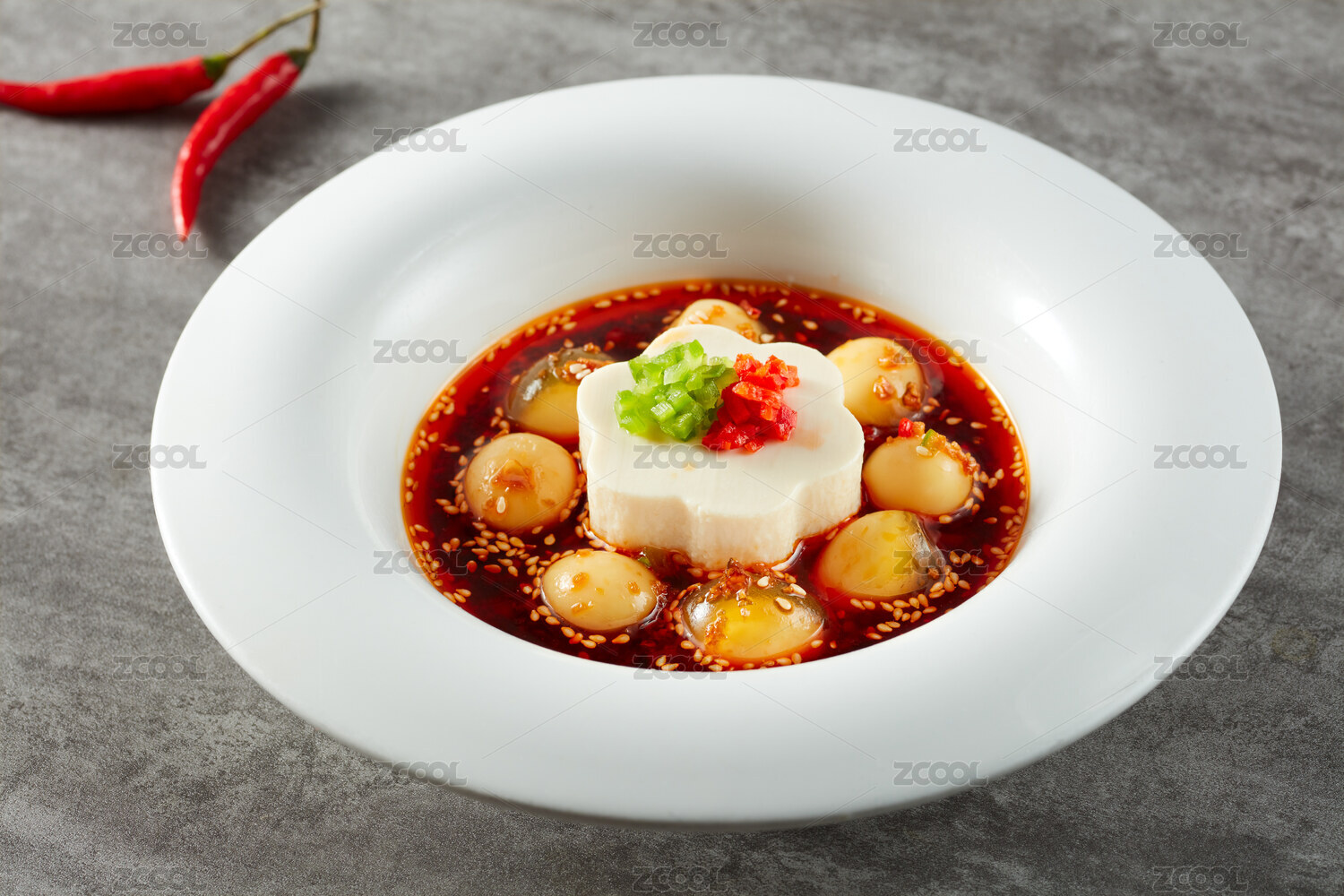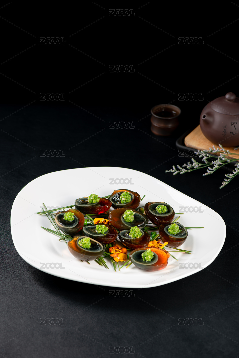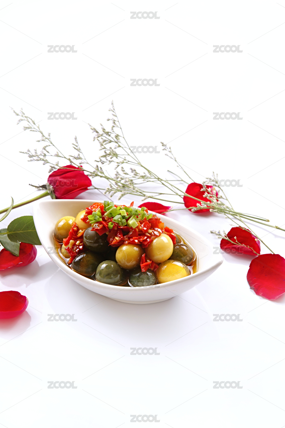白盘里的菜品青椒皮蛋烧椒皮蛋麻辣皮蛋