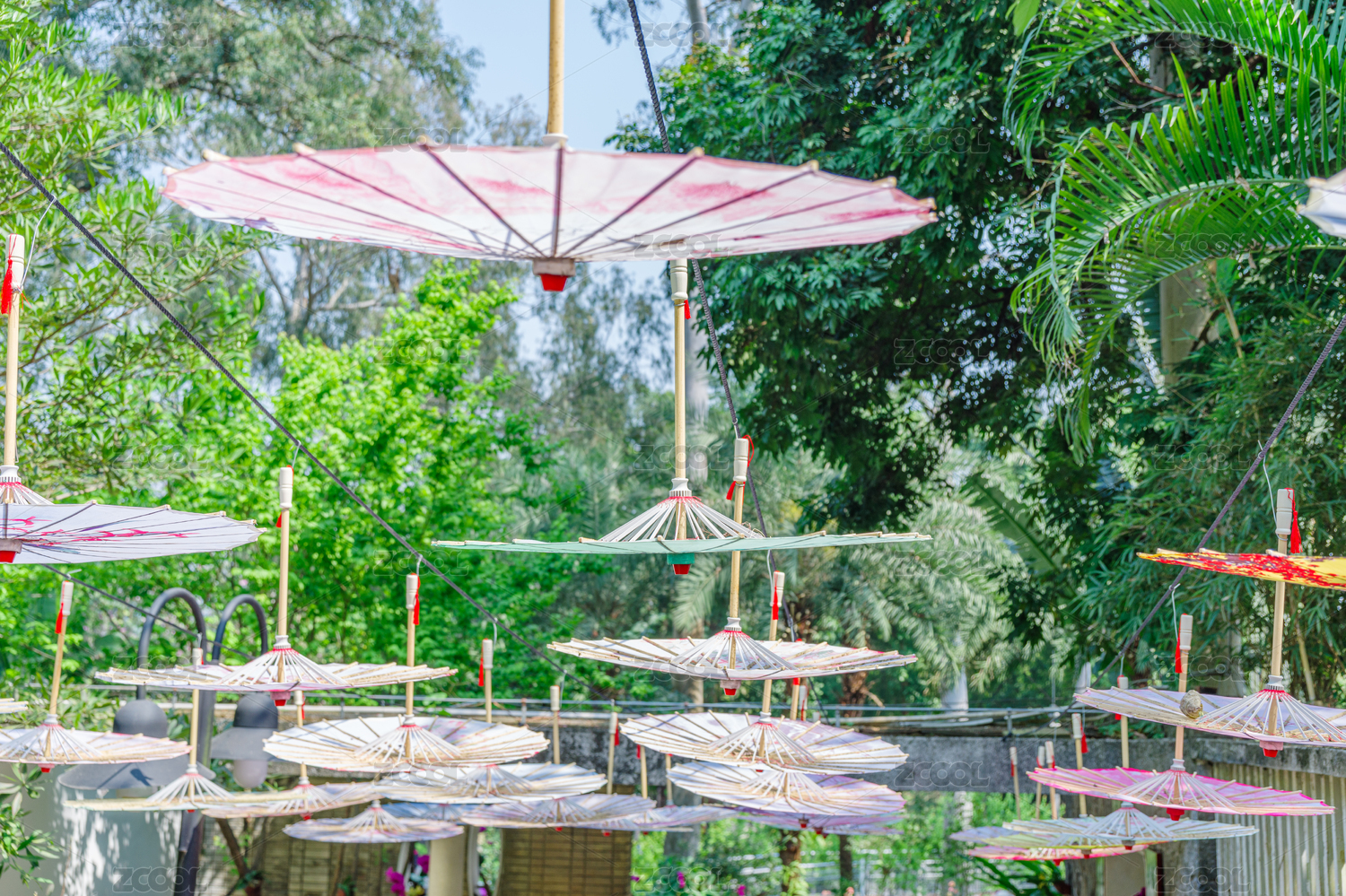 广州麓湖公园麓湖花园倒挂的油纸伞花伞