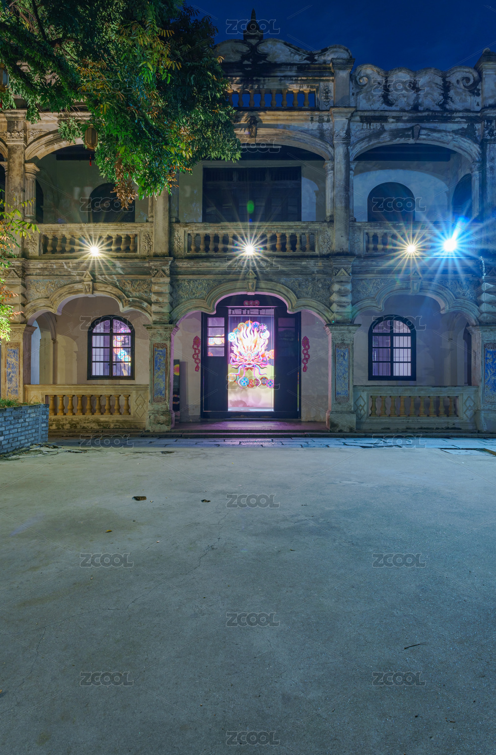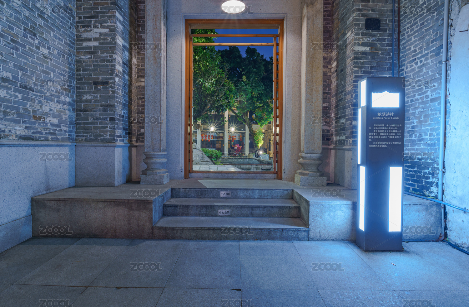佛山岭南天地龙塘诗社中式传统走廊夜景