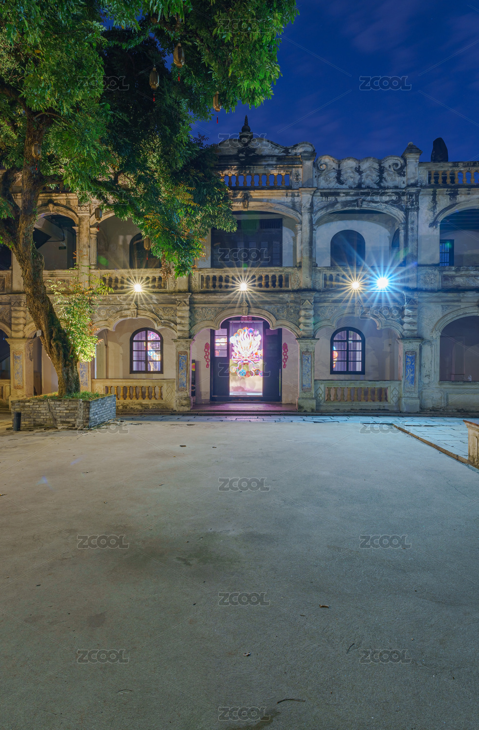 佛山岭南天地龙塘诗社中式传统建筑夜景灯光