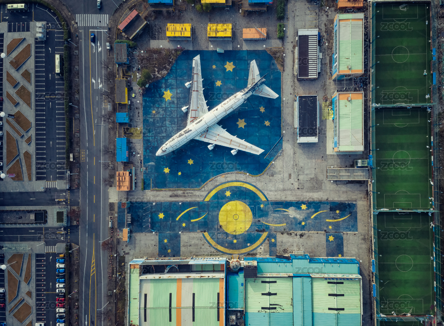 俯瞰中国上海崇明东平森林公园中的战斗机