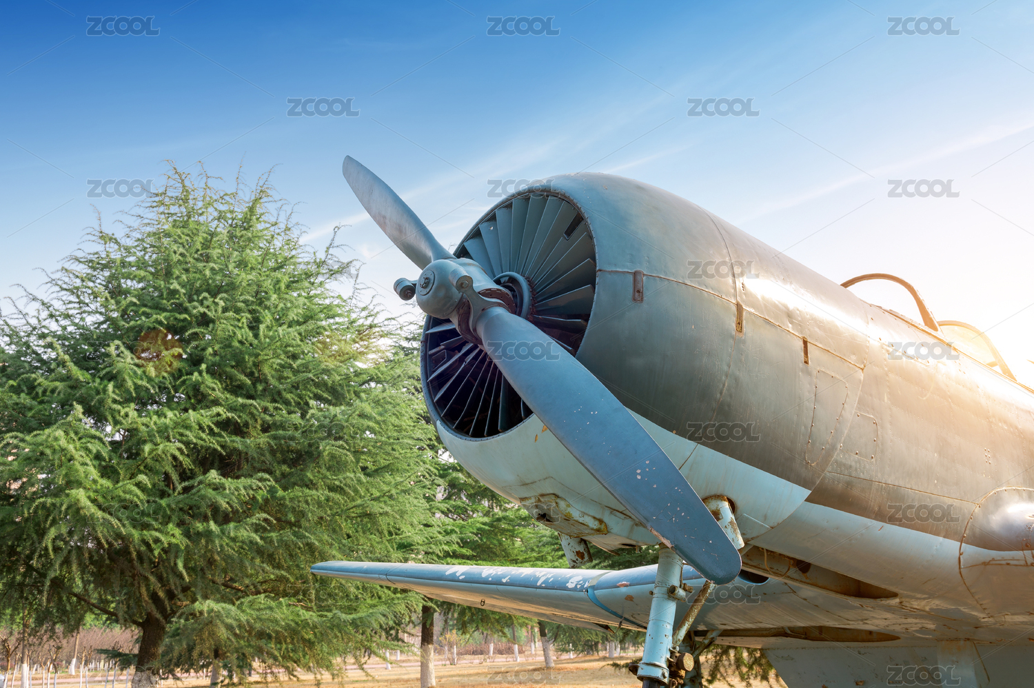 报废的战斗机,摆放在公园中。