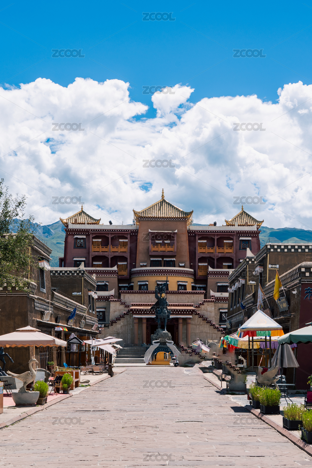 中国四川甘孜州甘孜县格萨尔王城藏族建筑风光