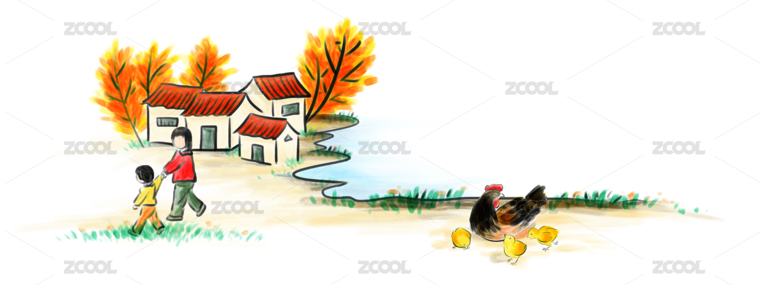 水墨插画乡间小院