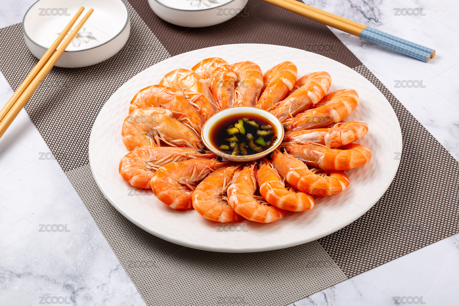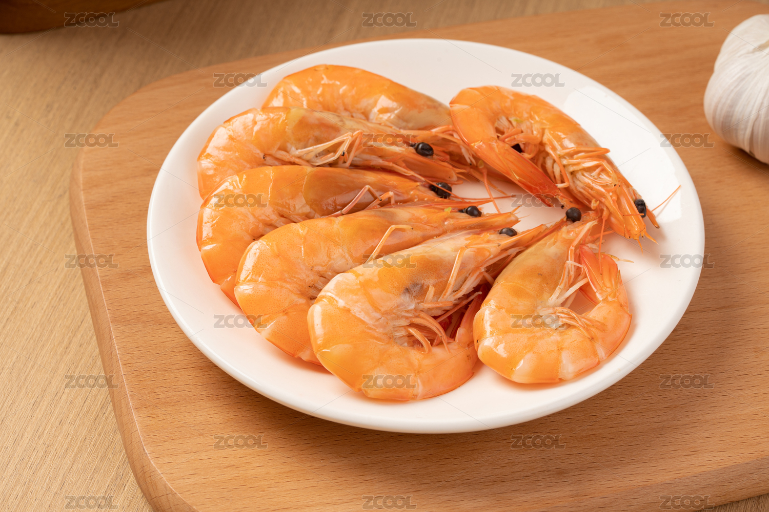 盘子里的水煮虾