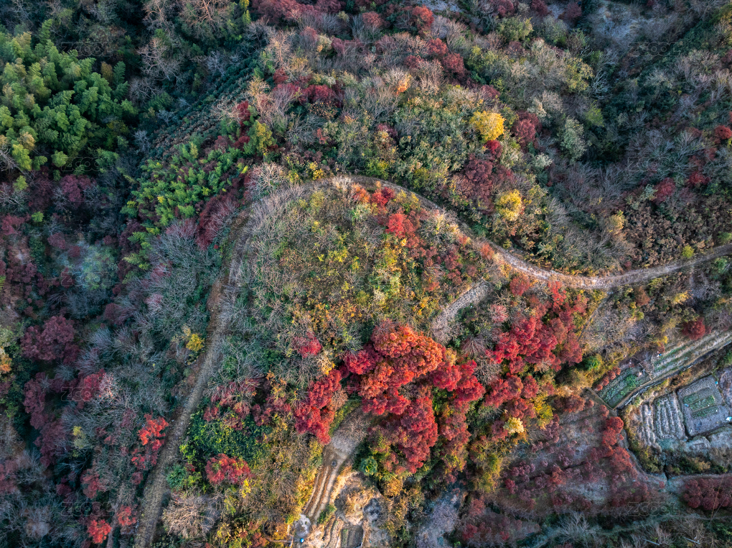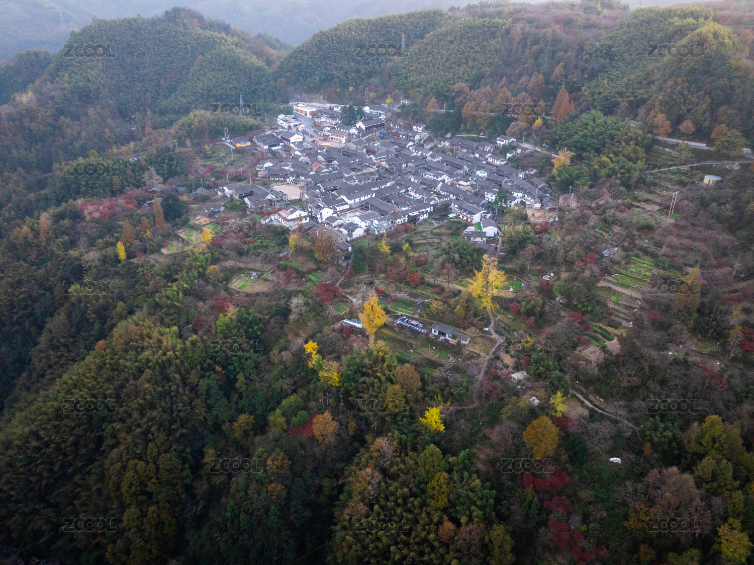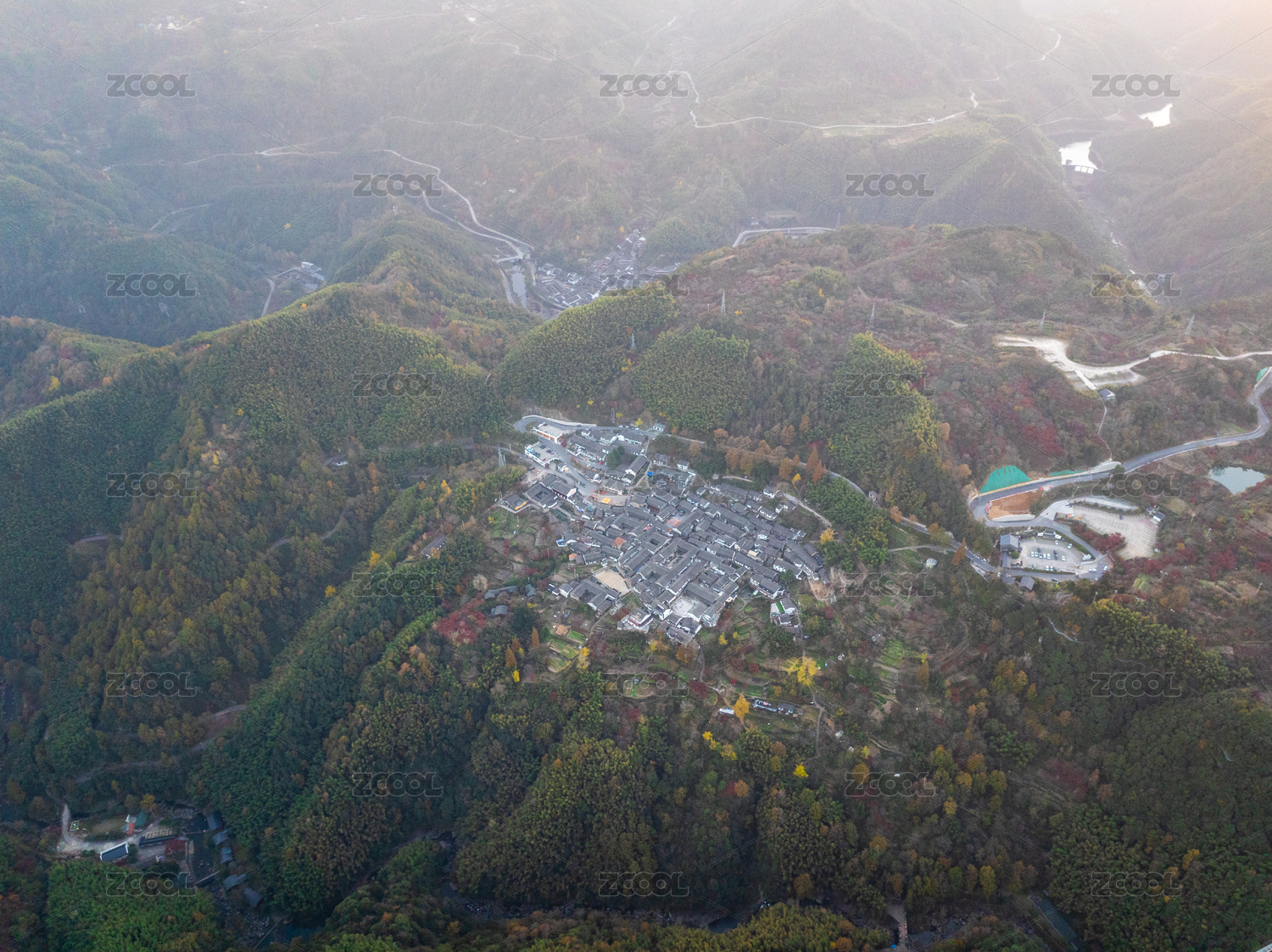 浙江宁波四明山丹山赤水柿林村秋季航拍