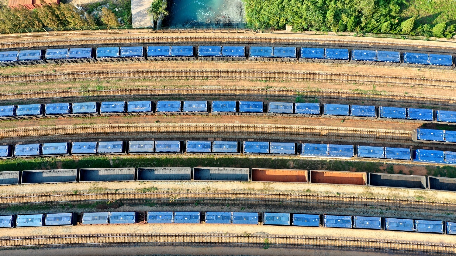 航拍郑州北站铁路编组站编组场货物列车夜景