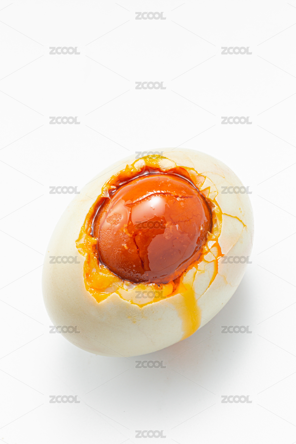 白背景里一颗流着油的海鸭蛋
