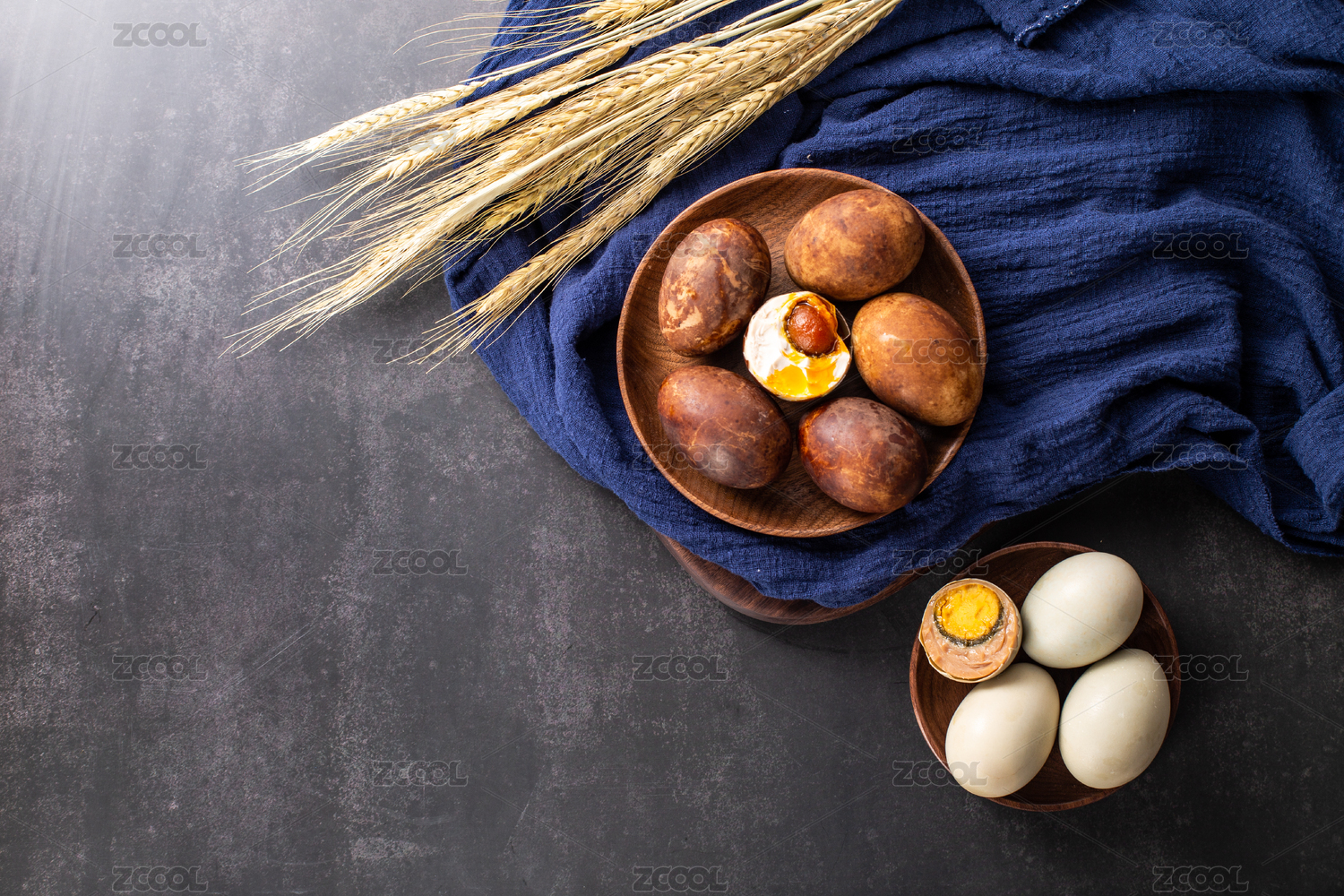 木板背景上美味的咸鸭蛋