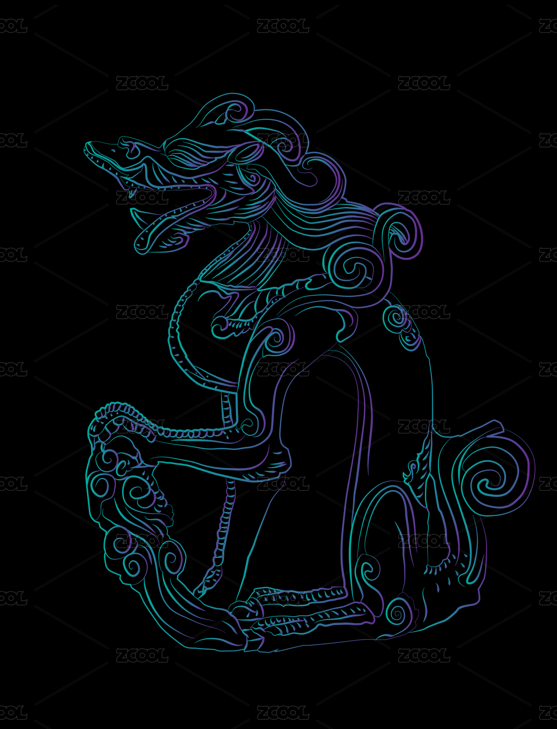 中国风龙年古典金代铜坐龙手绘矢量时尚线稿
