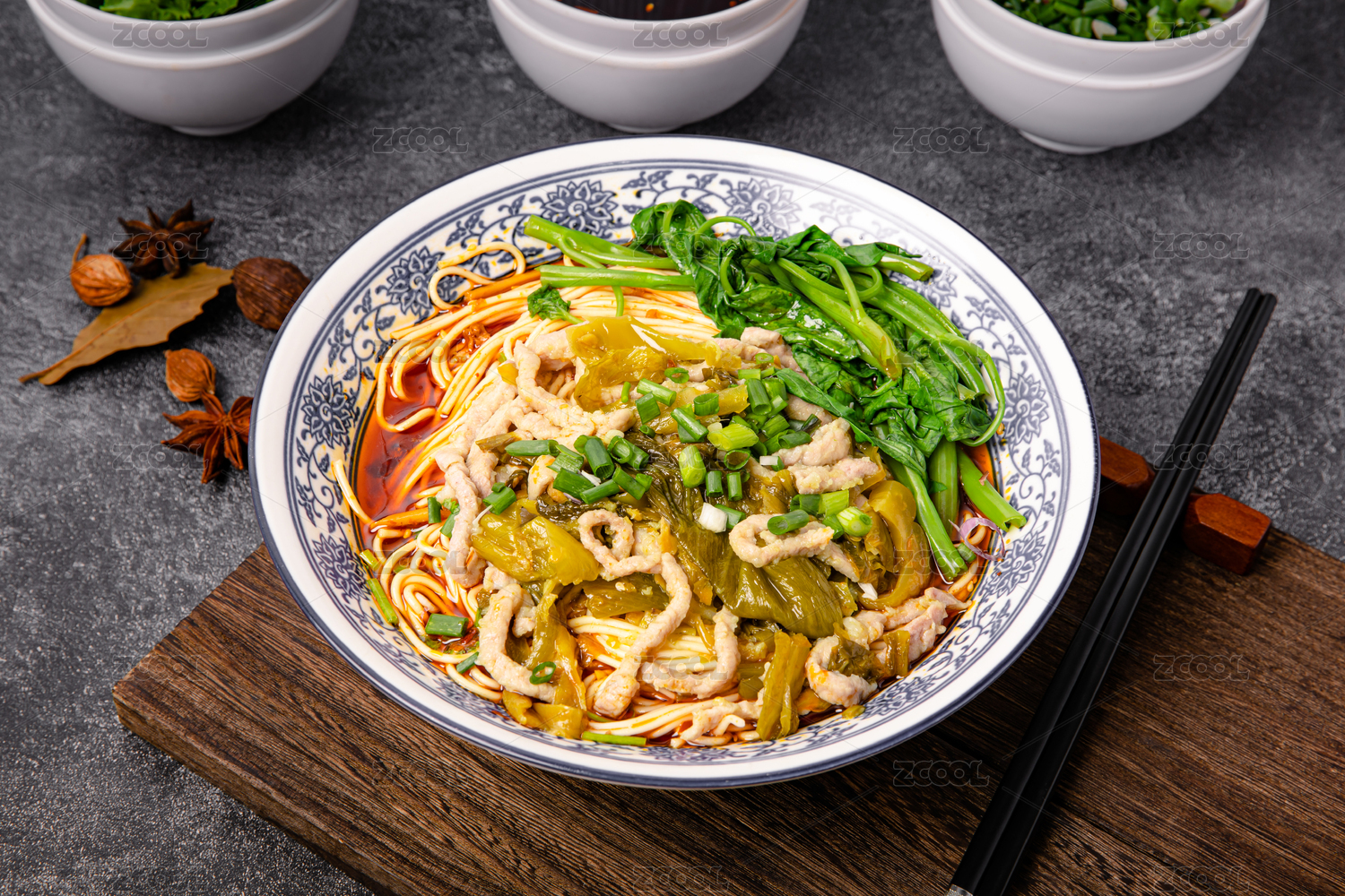 美食榨菜肉丝面,特色小吃面条