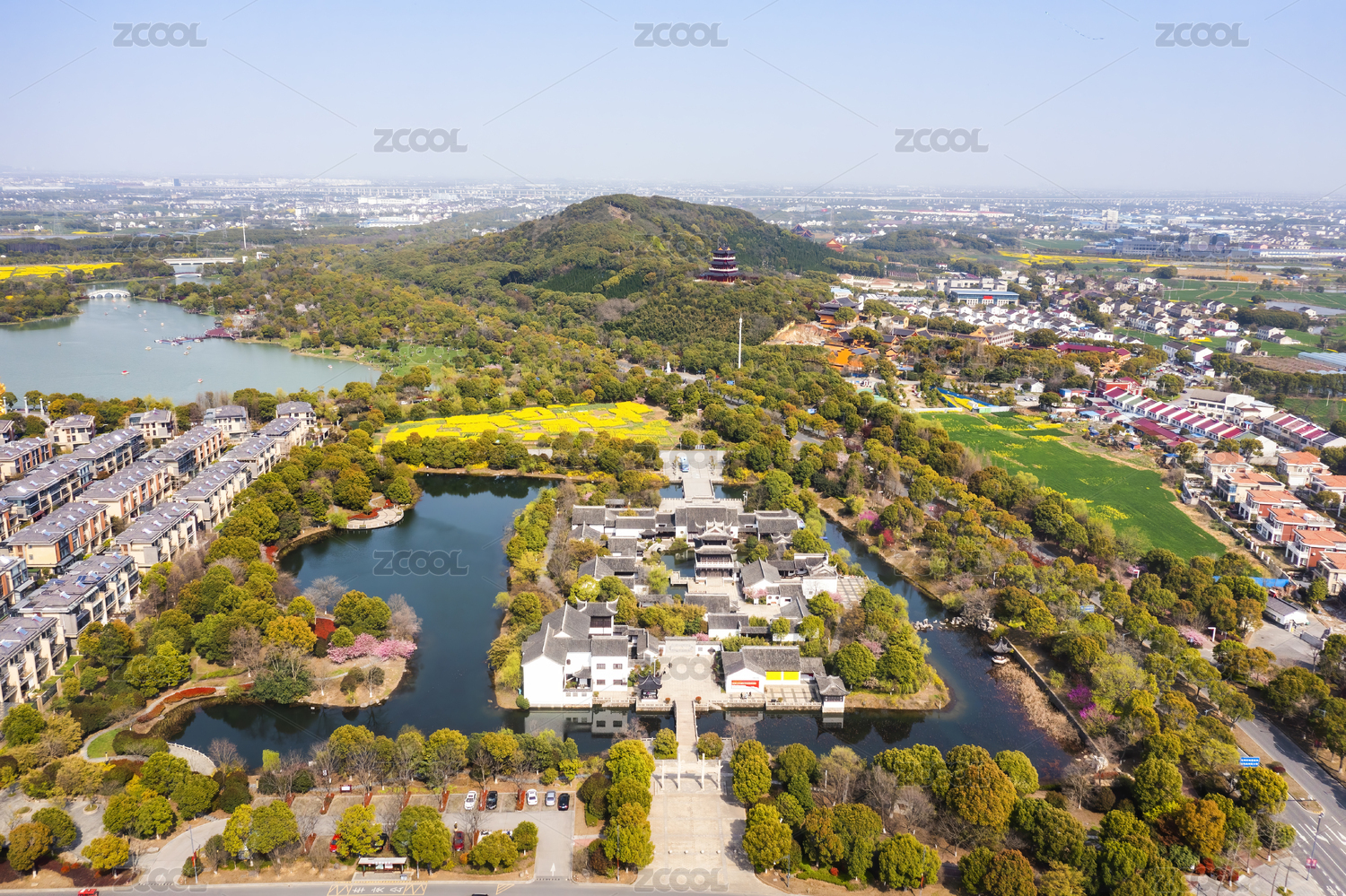 中国浙江嘉兴桐乡市凤凰湖公园全景园林风光
