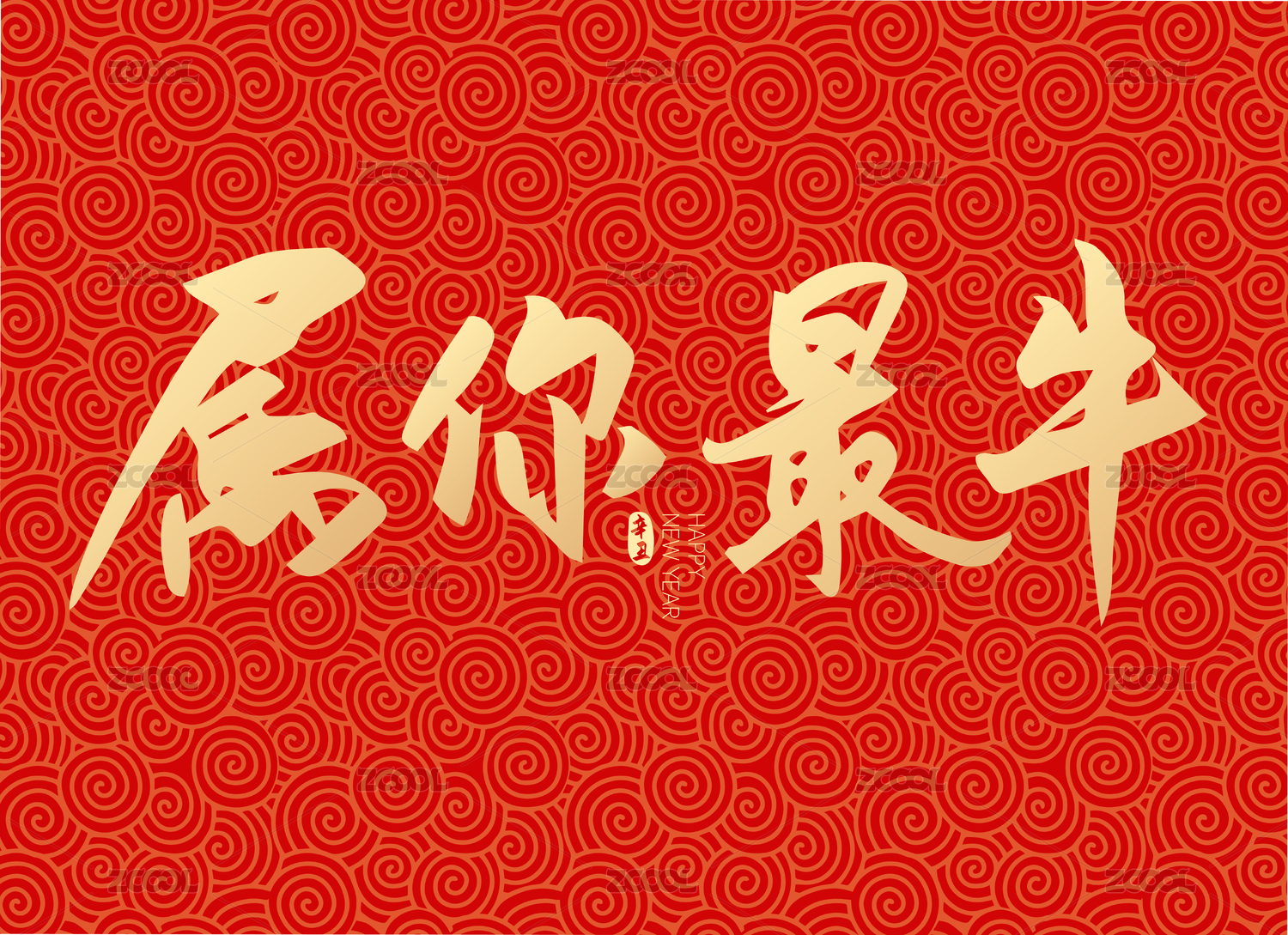 春节新年属你最牛牡丹花开锦鲤送福矢量海报
