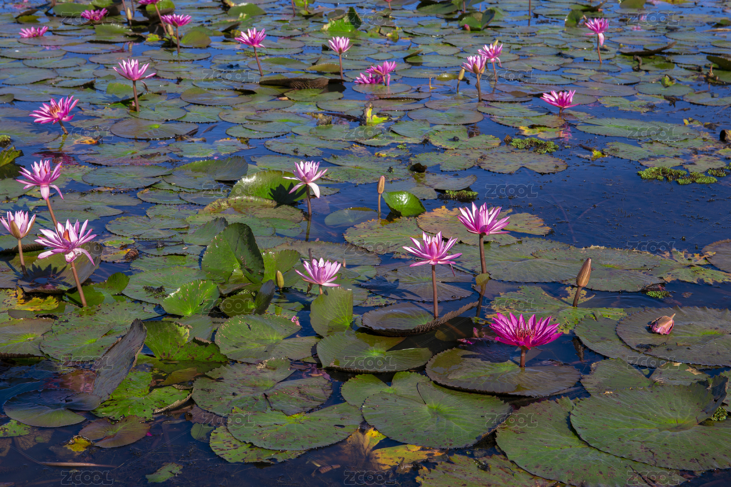 泰国乌隆红莲湖满是荷叶的湖面上的红莲花