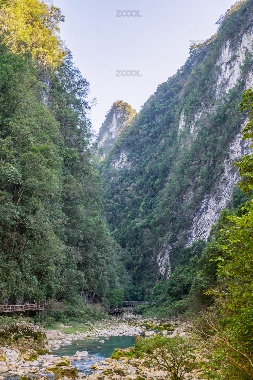 贵州黔南荔波大七孔峡谷孟塘河及观光栈道