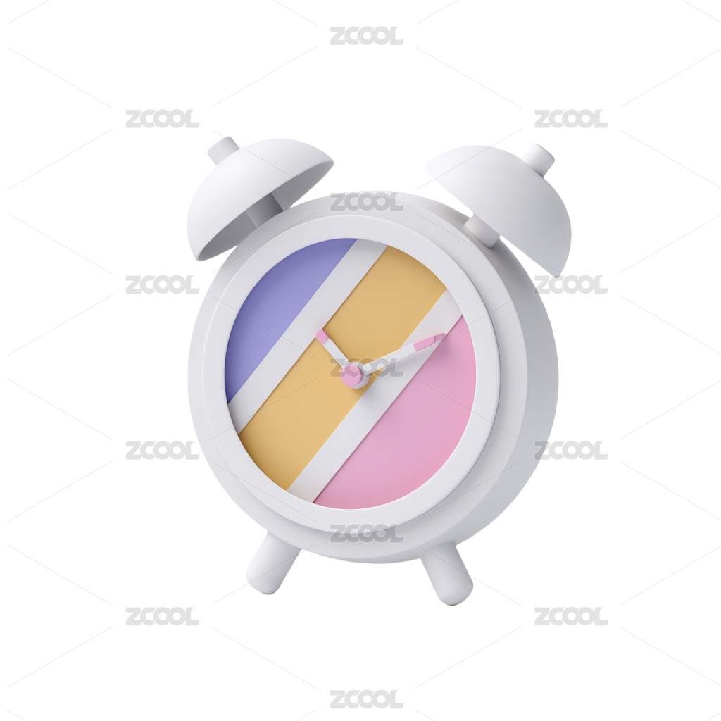 3D立体闹钟上的柱状图数据曲线和上升箭头