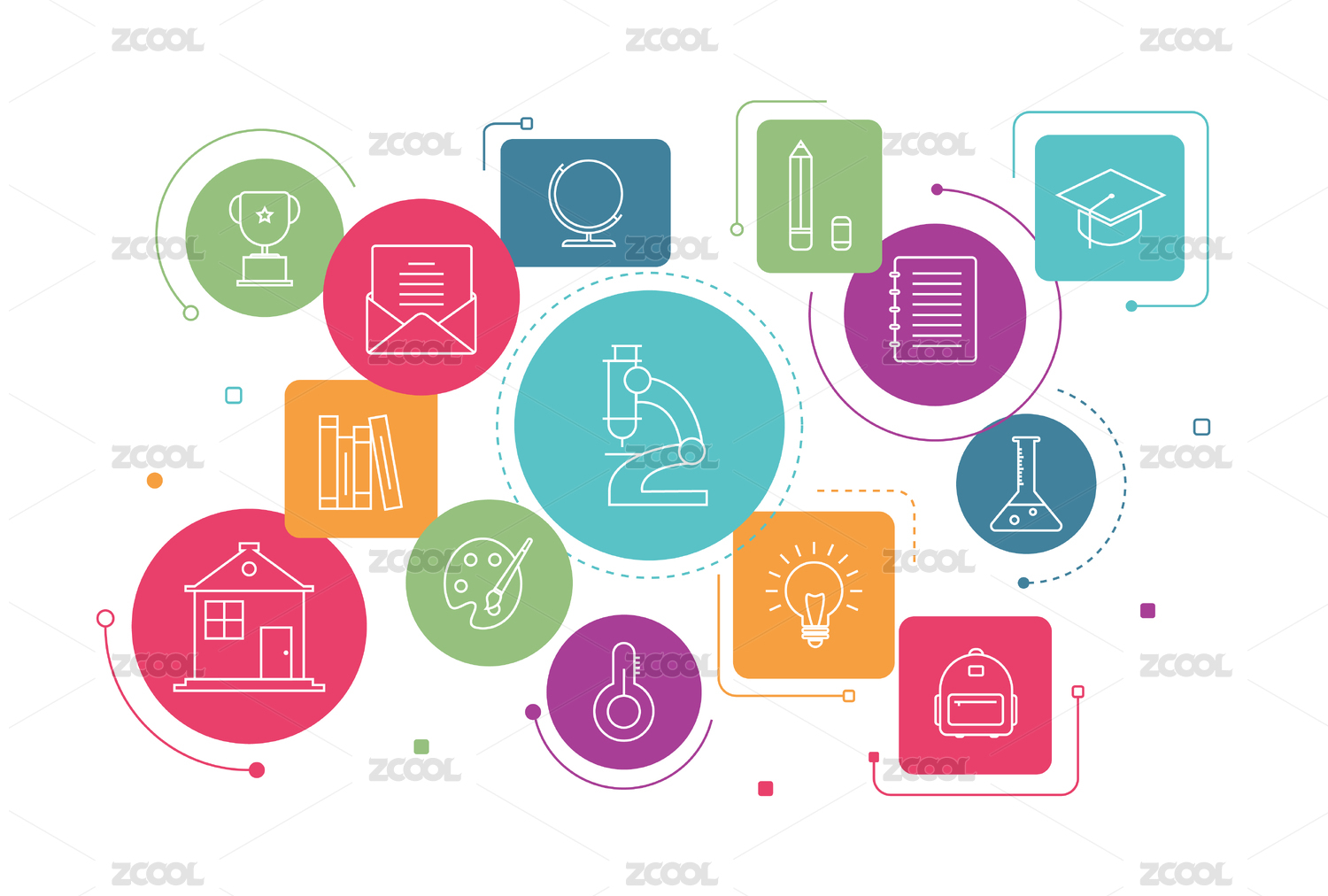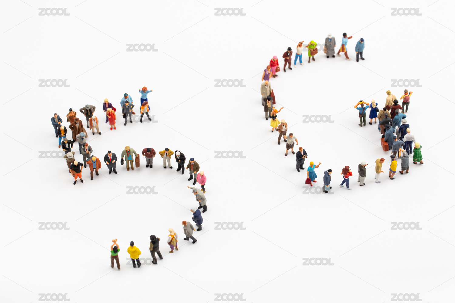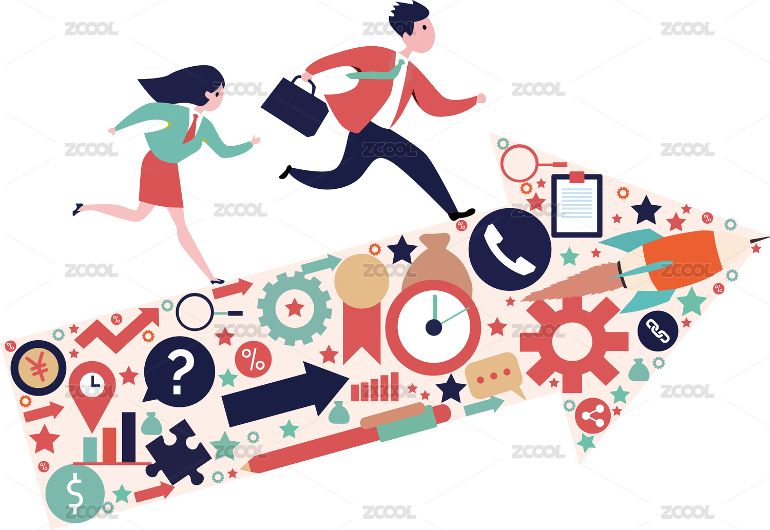 由商务图标组合的红色箭头,职员在赛跑竞争理念