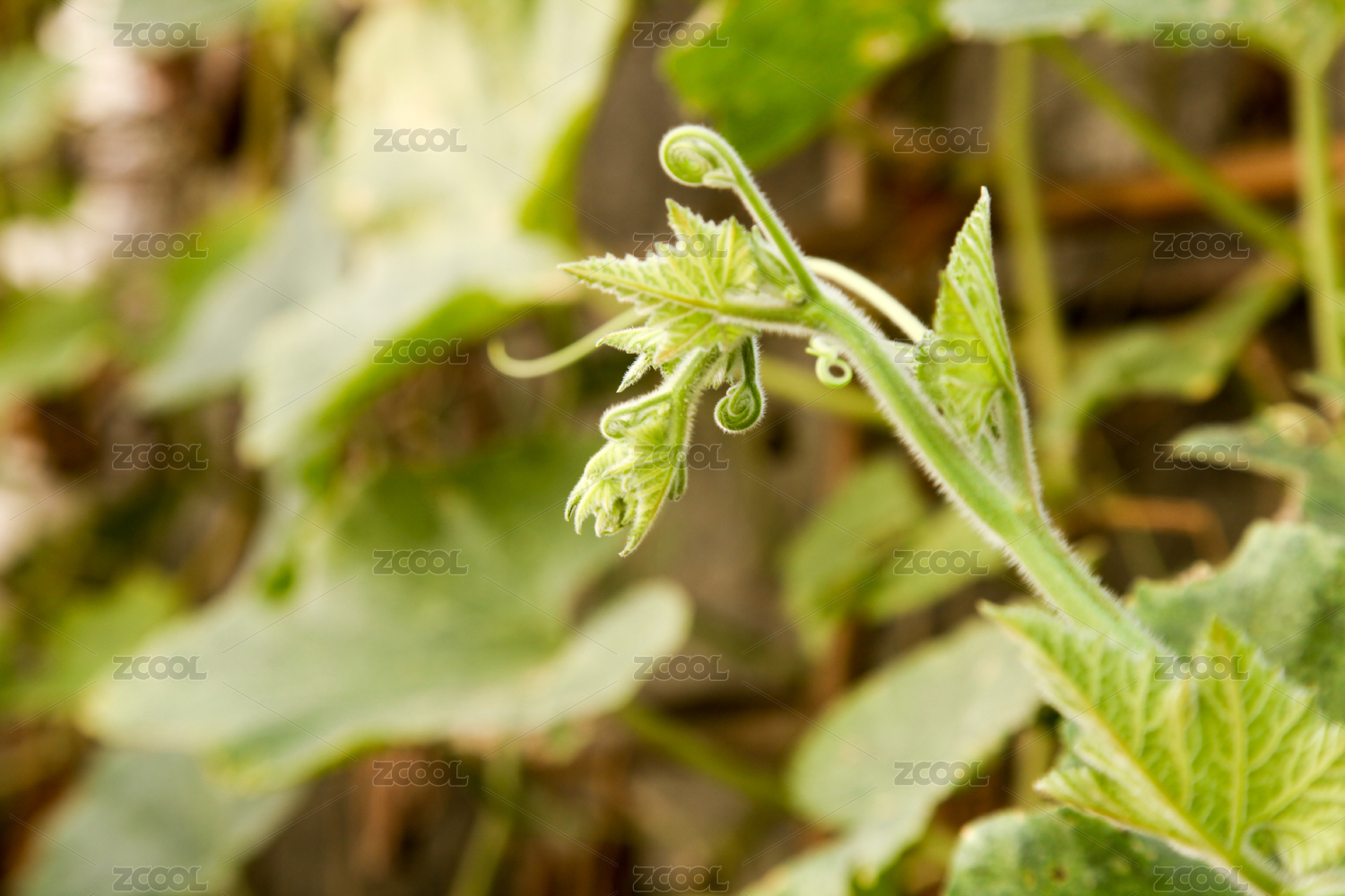卷曲的嫩绿南瓜藤蔓特写