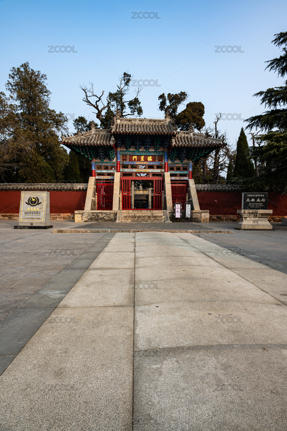 中国山东济宁邹城孟庙孟府旅游区航拍图