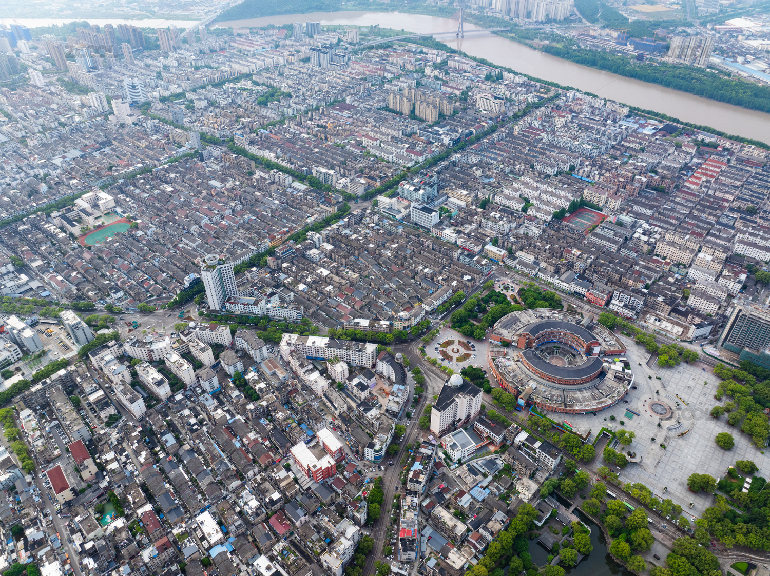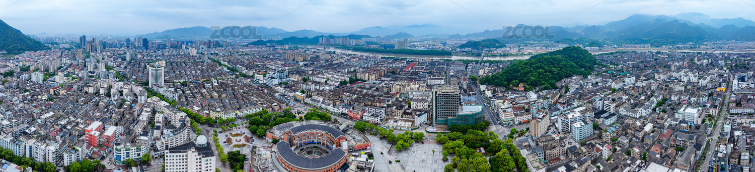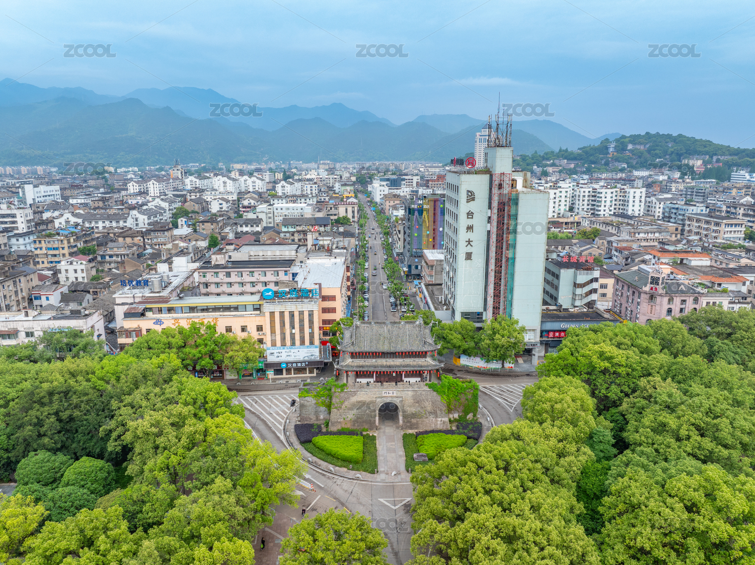 航拍浙江省台州市临海市东湖景区紫阳古街