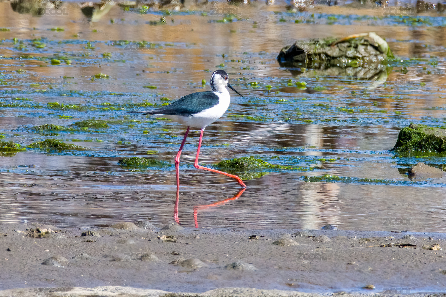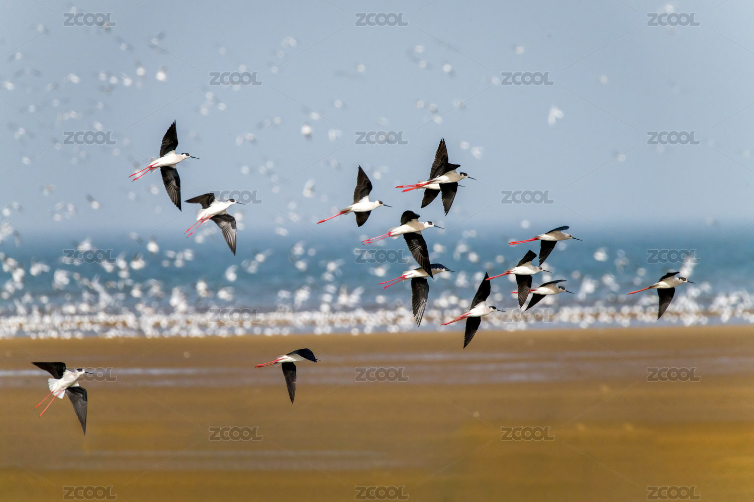 中国河北省秦皇岛市北戴河湿地黑翅长腿鹬群