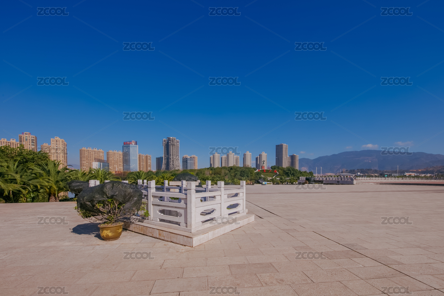 云南玉溪市聂耳音乐广场城市天际线航拍景观