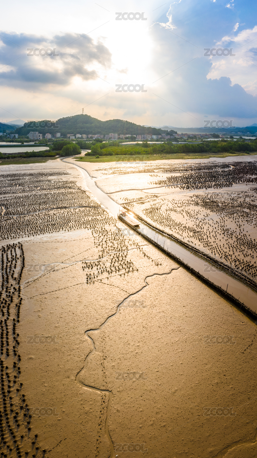 中国福建宁德霞浦三沙镇东壁村海湾滩涂光影