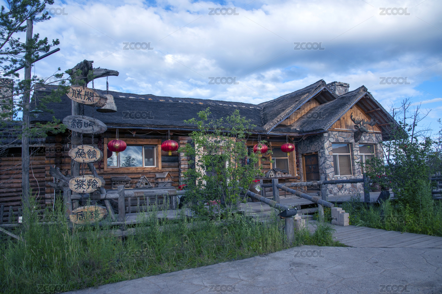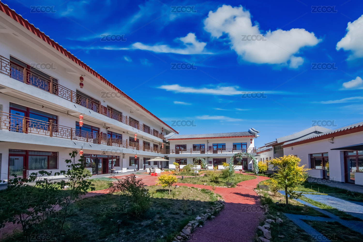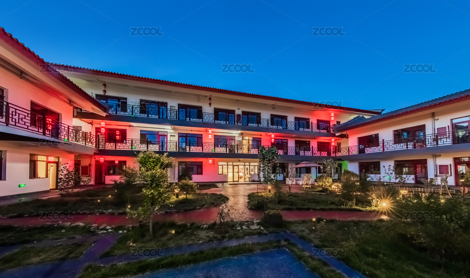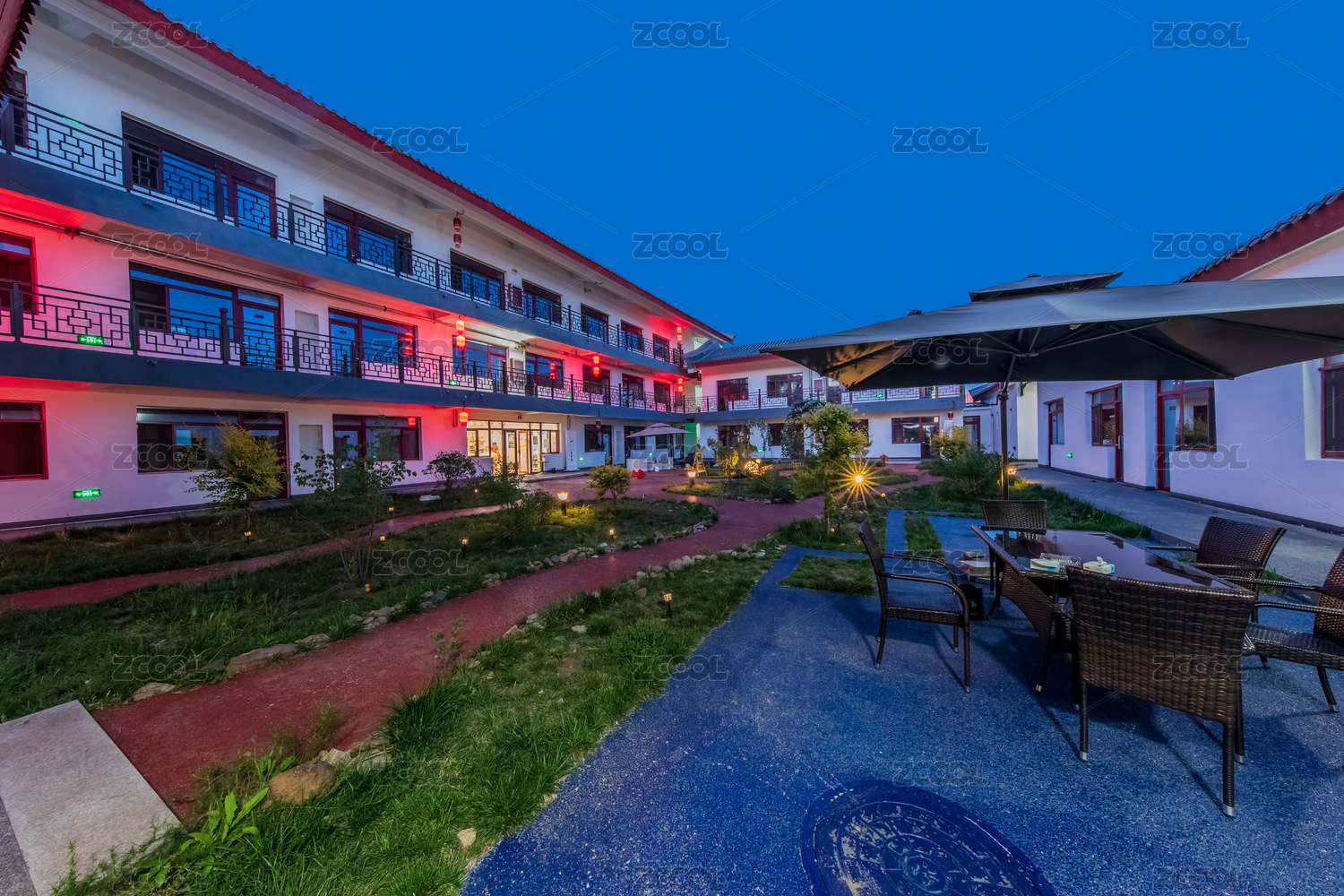 中国河北省丰宁县夜晚坝上农家客栈园林建筑