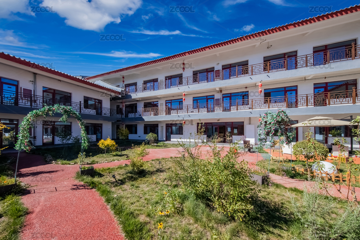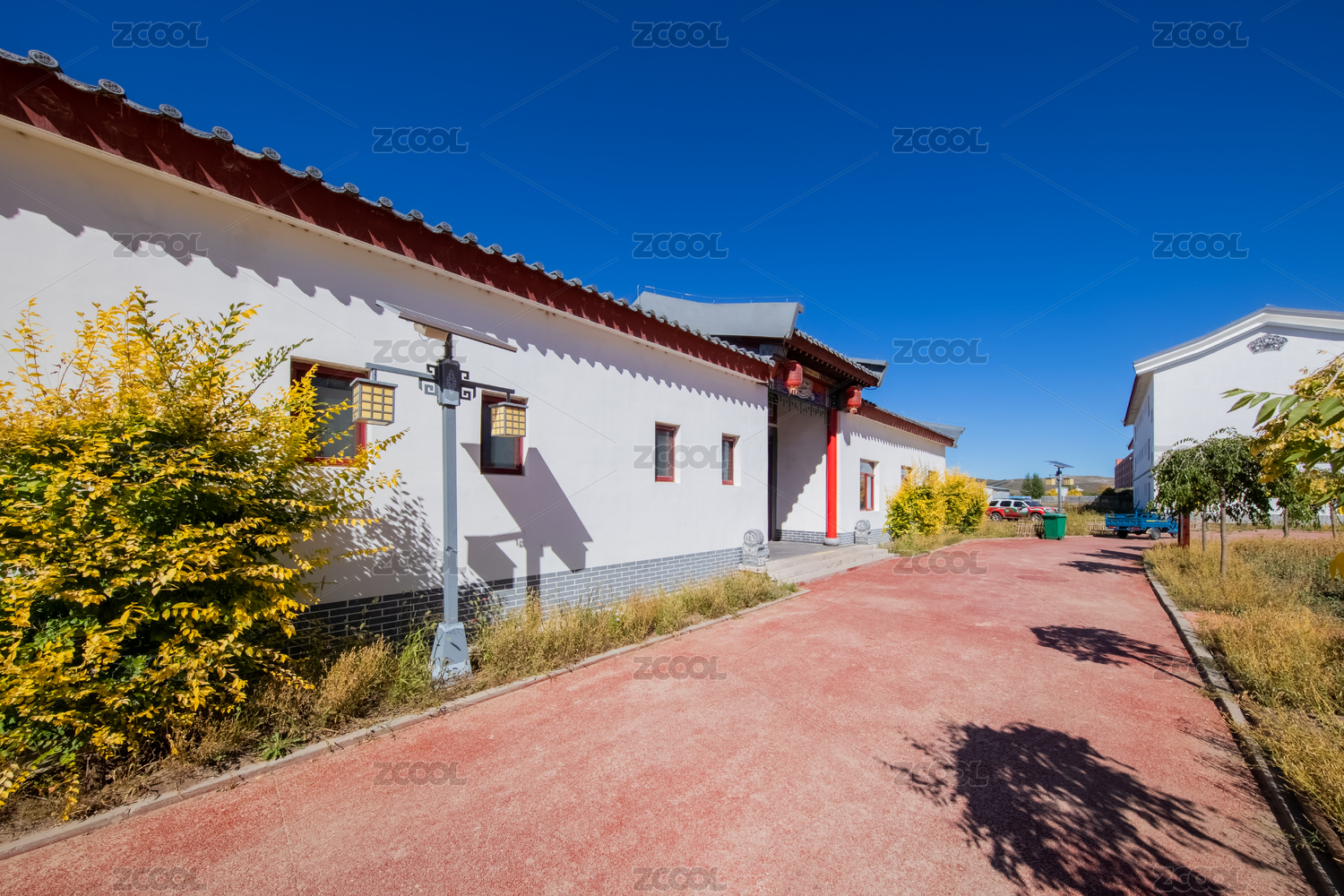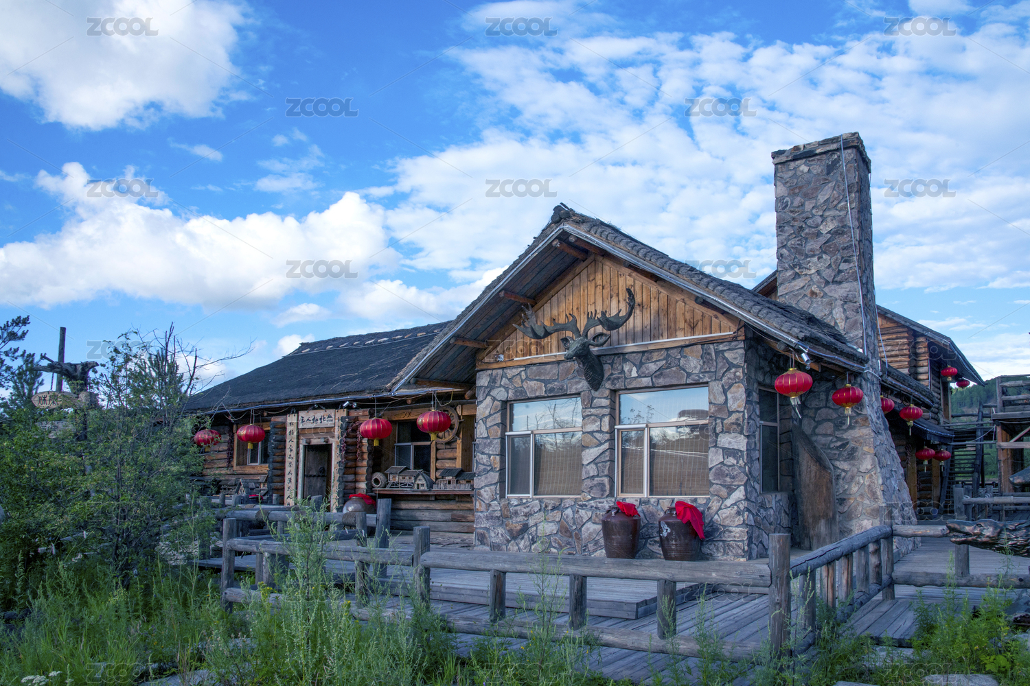 中国河北省丰宁县夜晚坝上农家客栈园林建筑